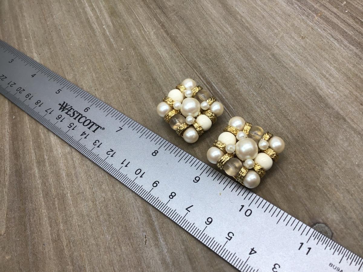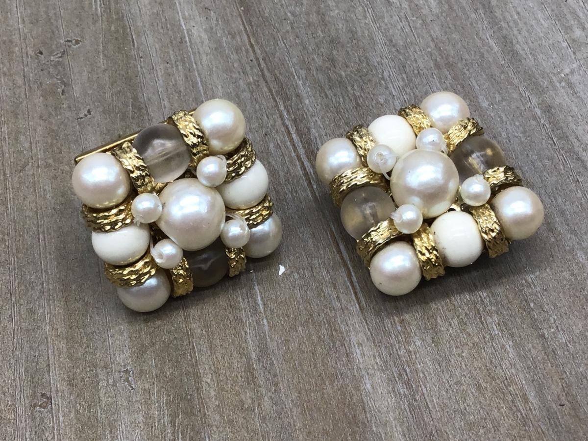 Large Faux Pearl Glass Bead Gold Accent Earrings