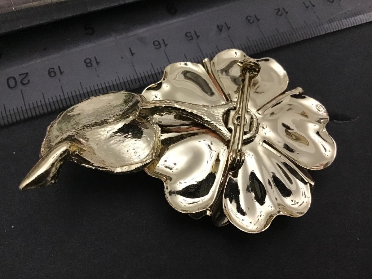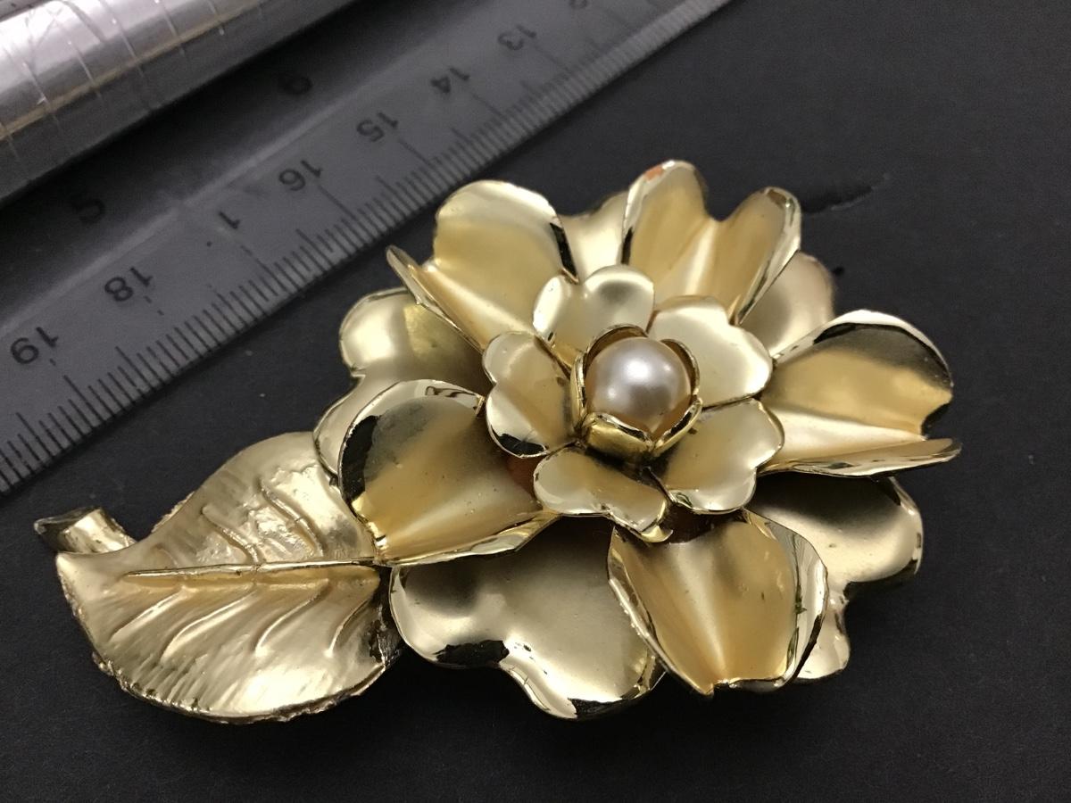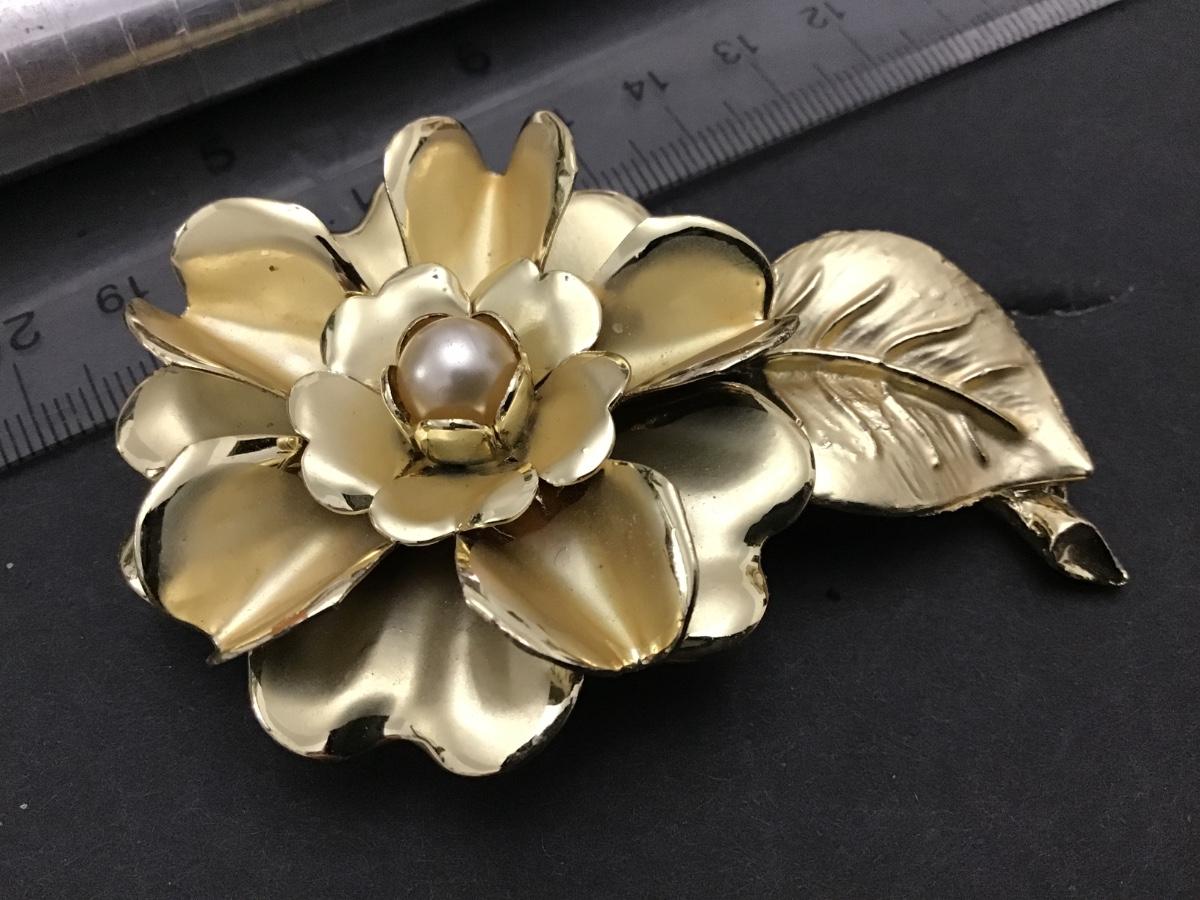 Large Faux Pearl Gold Tone vintage Flower Brooch