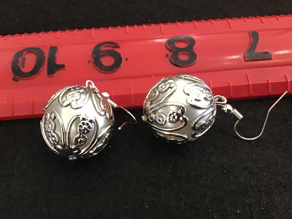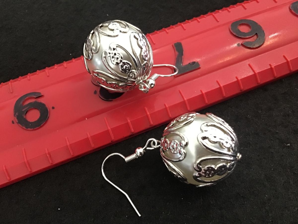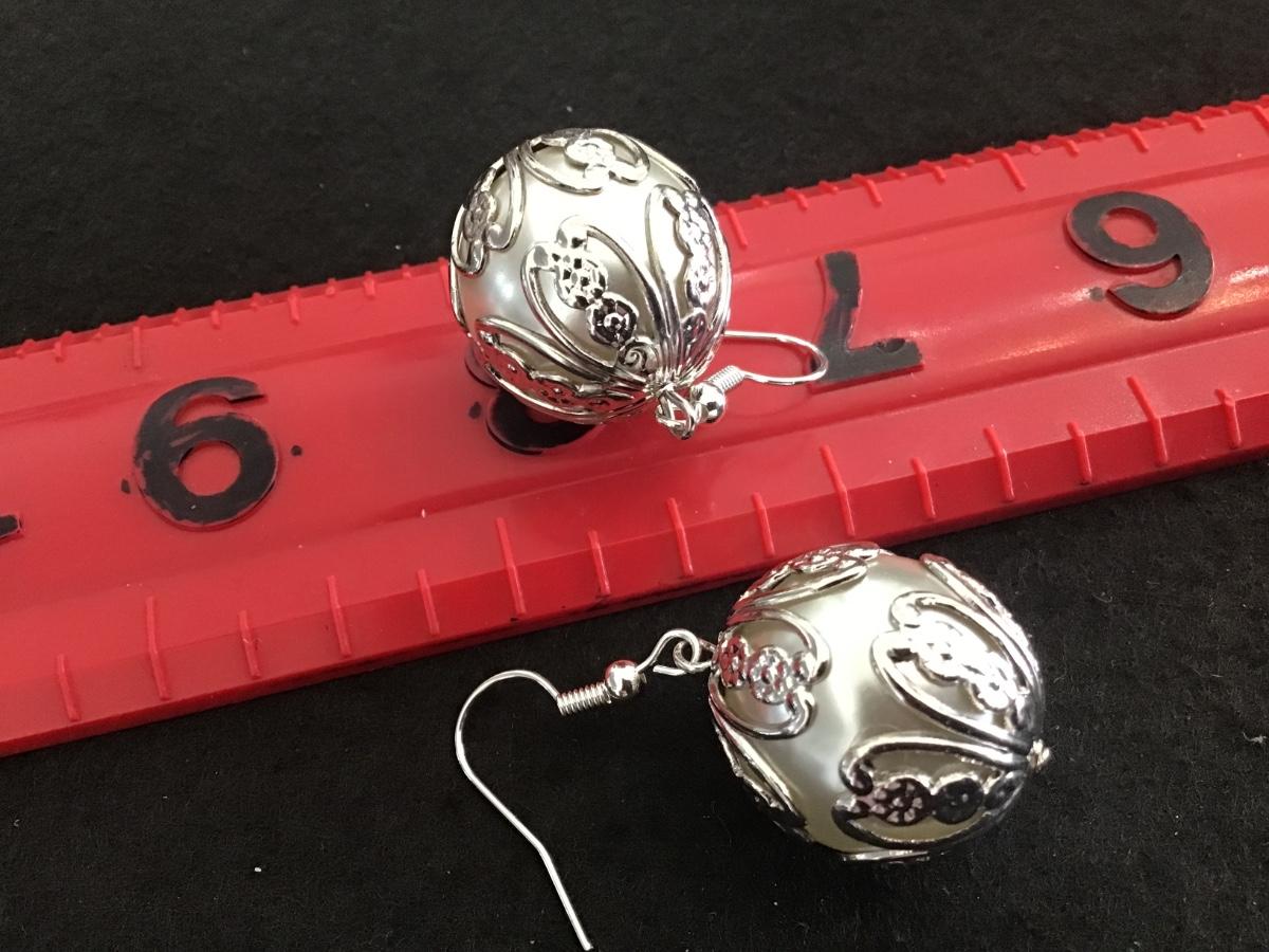 Large Faux Pearl Silver Filagree Ball Earrings