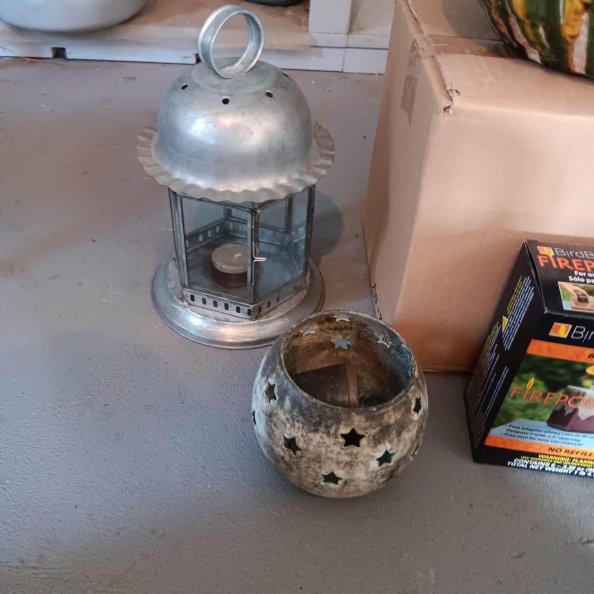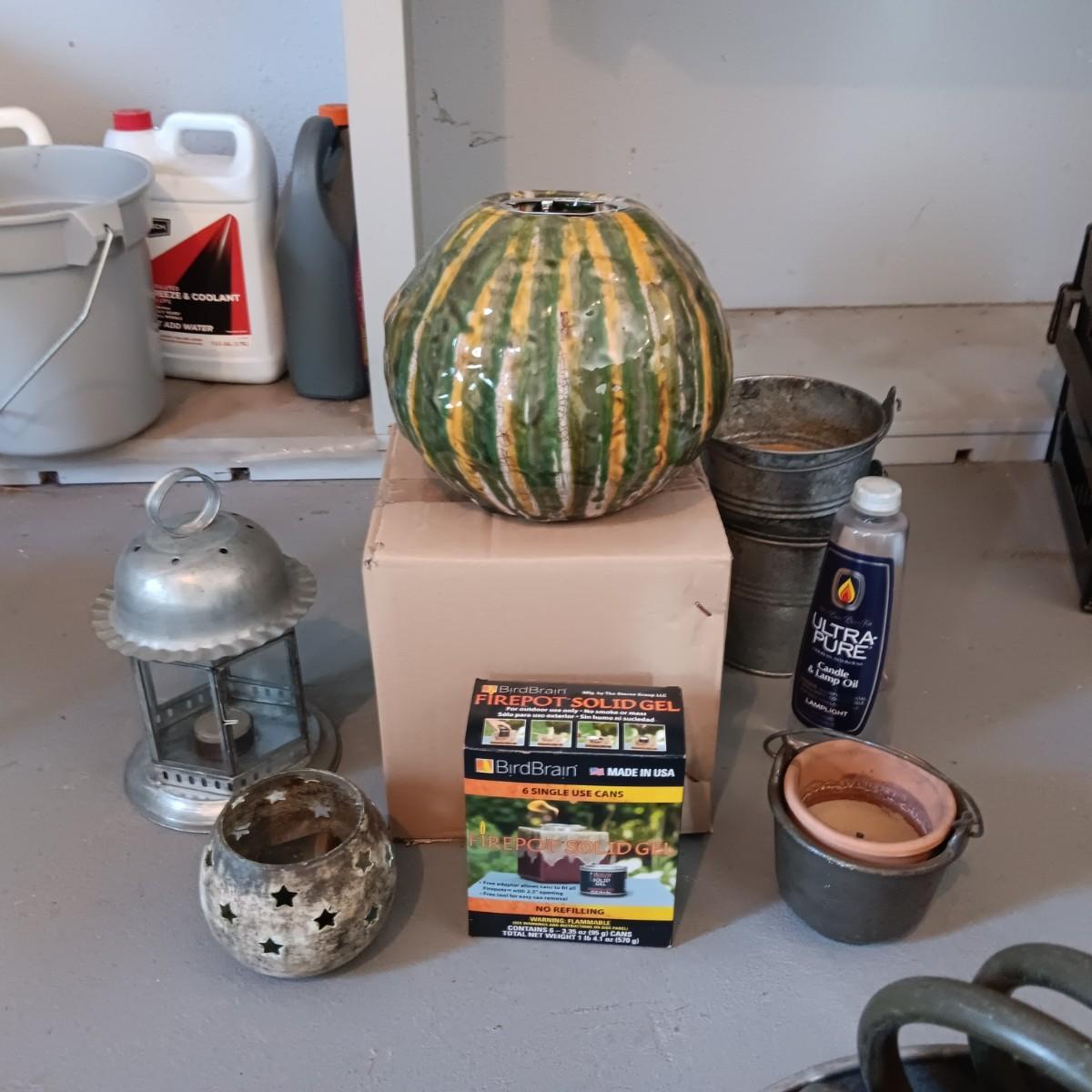 LARGE FIRE POT WITH GEL AND OTHER PATIO ITEMS TO KEEP THE BUGS AWAY