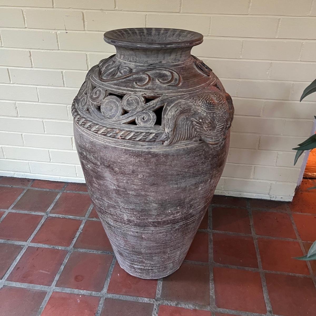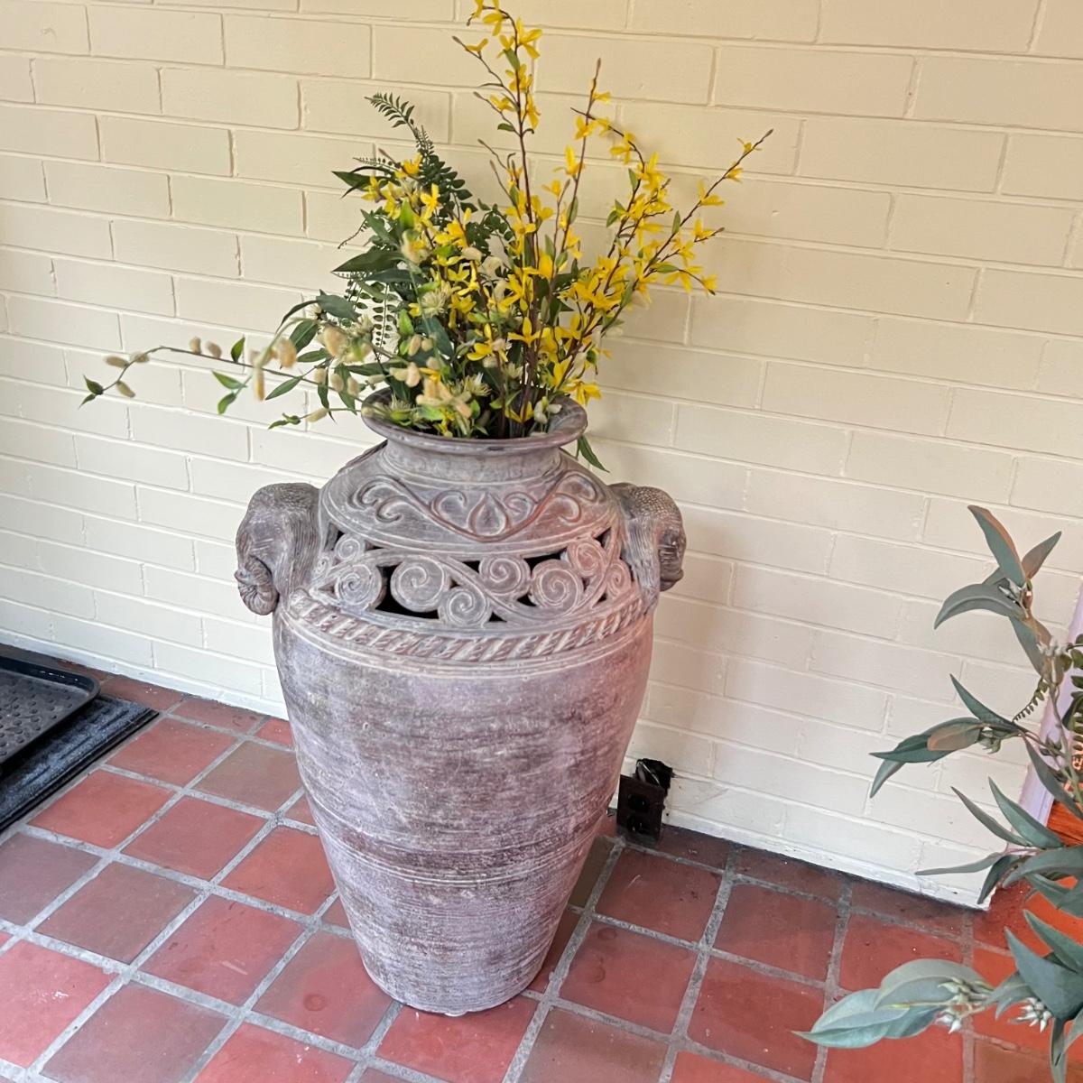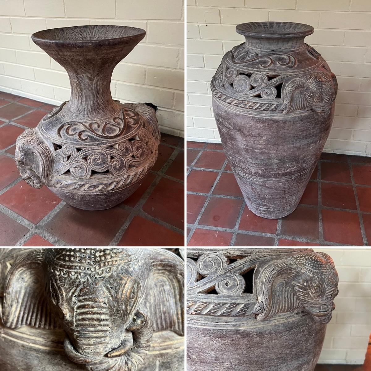 Large Floor Vase with Elephant Heads in a Vintage Terracotta Finish Plus More (SR-RG)