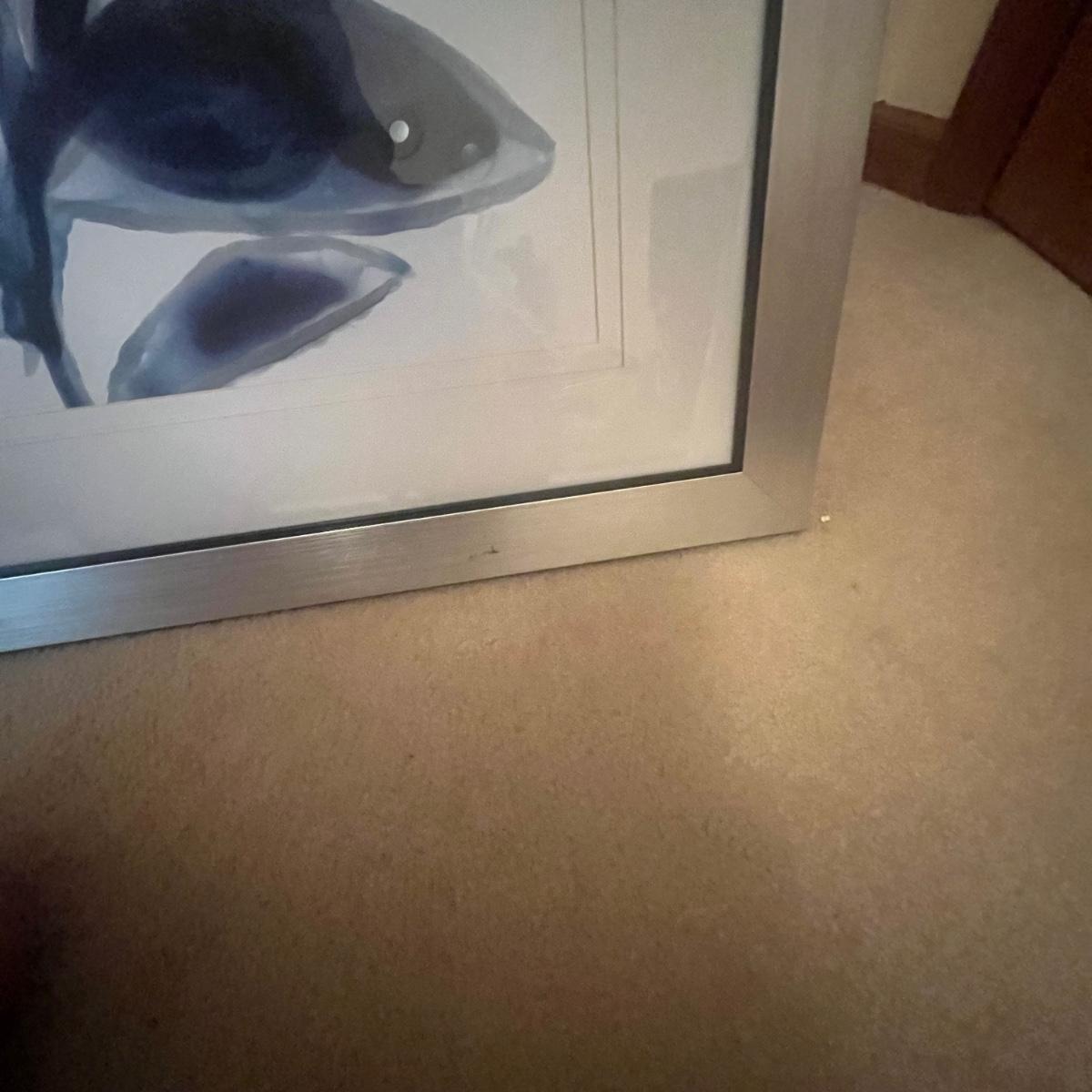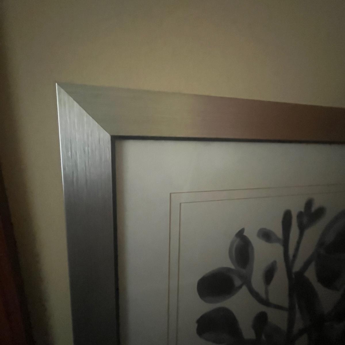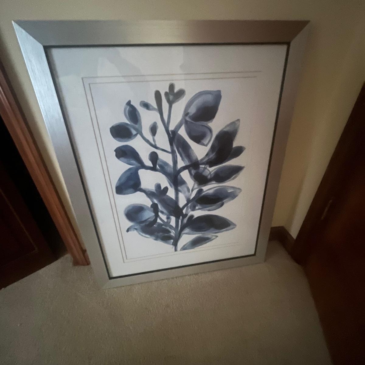 Lot includes a matted and framed floral print that measures 27” x 33”H. Plastic frame has a scratch on bottom, see pictures.