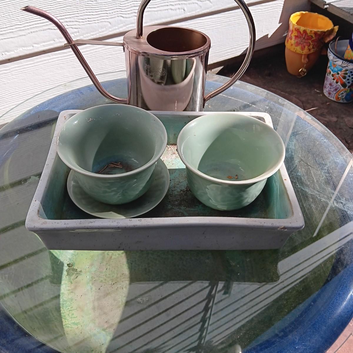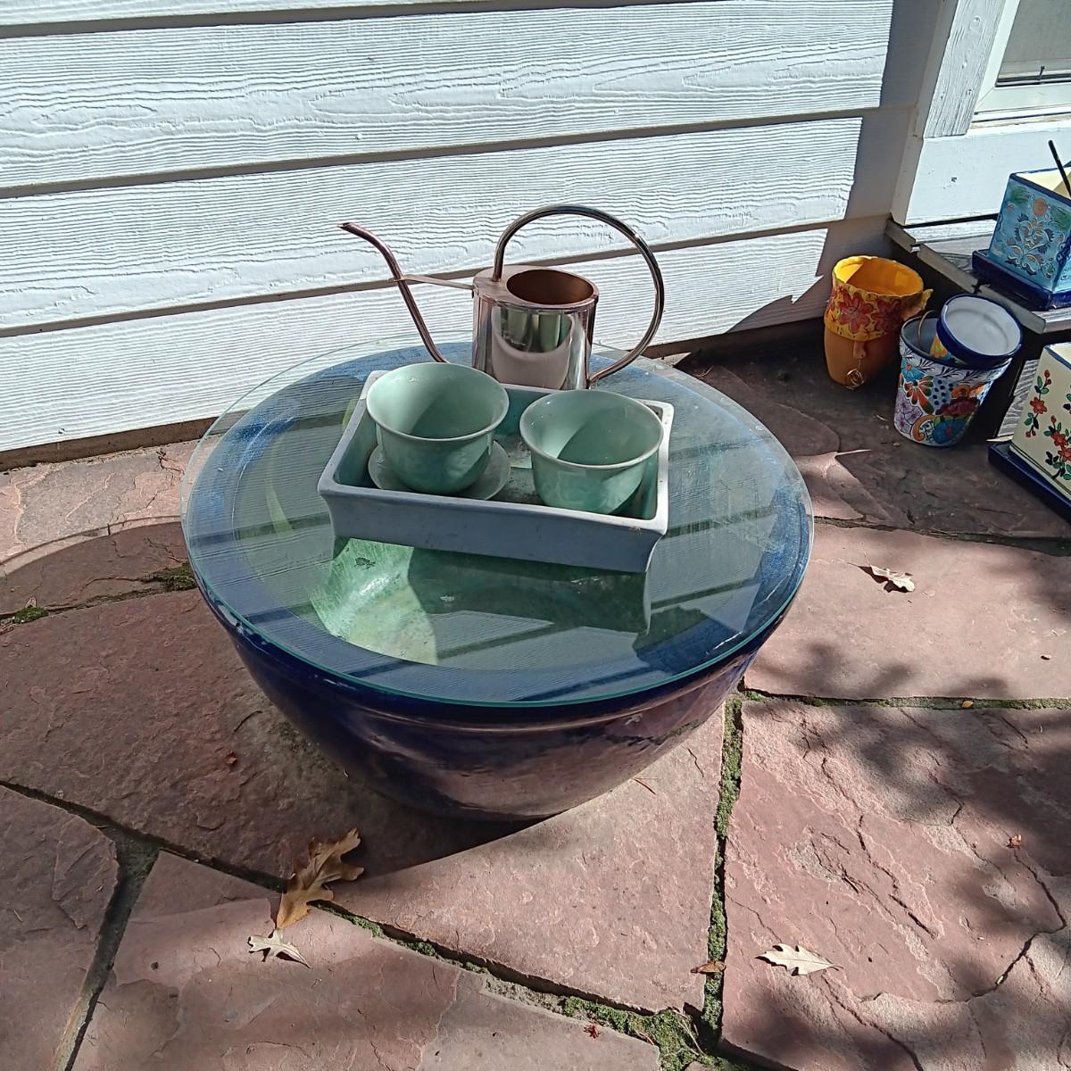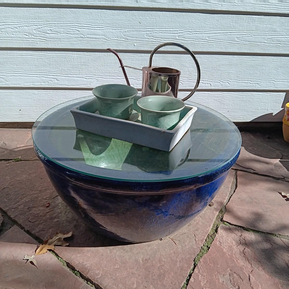 LARGE FLOWER POT WITH GLASS TOP AND FLOWER POTS