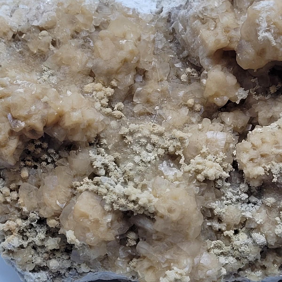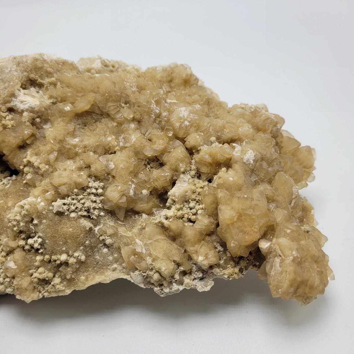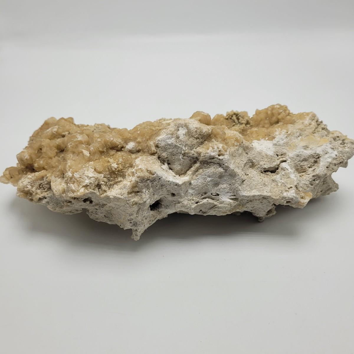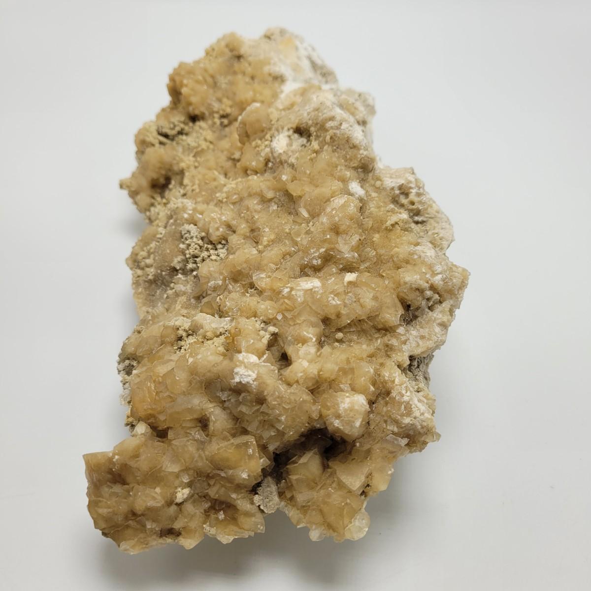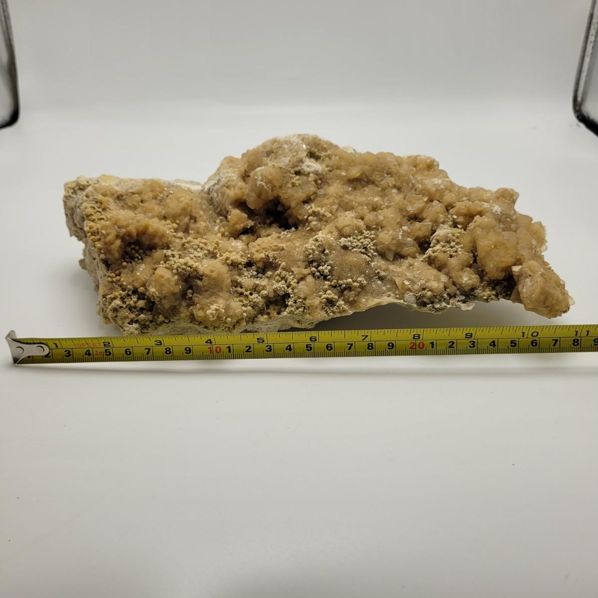 This lot includes what appears to be a large calcite cluster. A calcite cluster is a natural formation of calcite crystals. This specimen is large, measuring 12" x 6" x 4"H. This specimen glows green under a UV light as is common with different types of calcite.