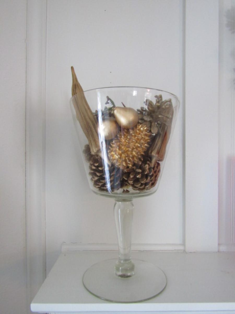 Large Footed Glass Vase with Decorative Potpourri