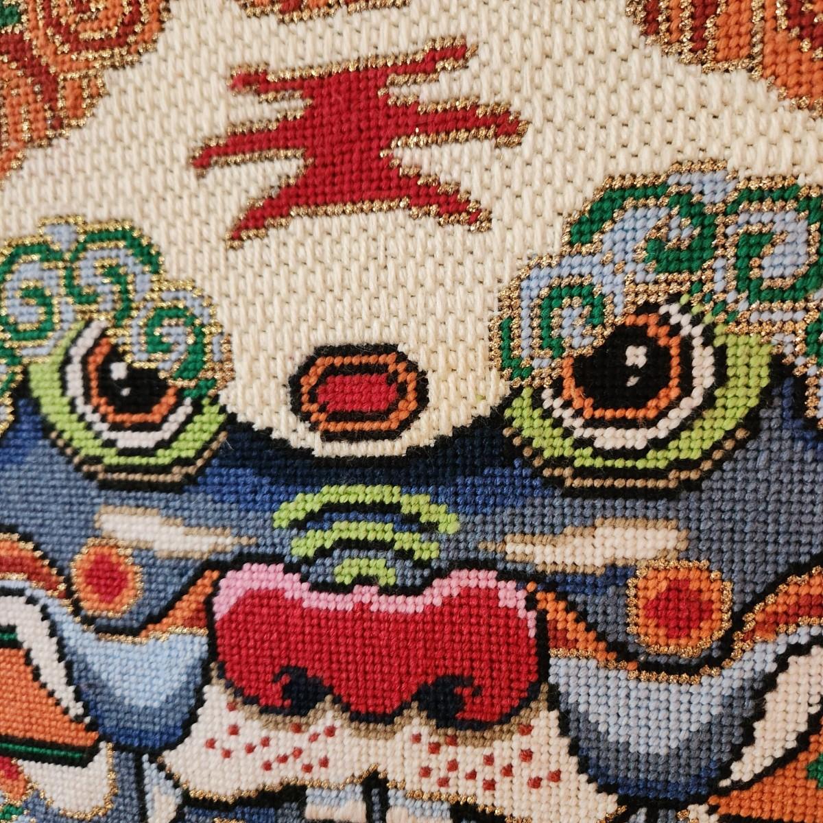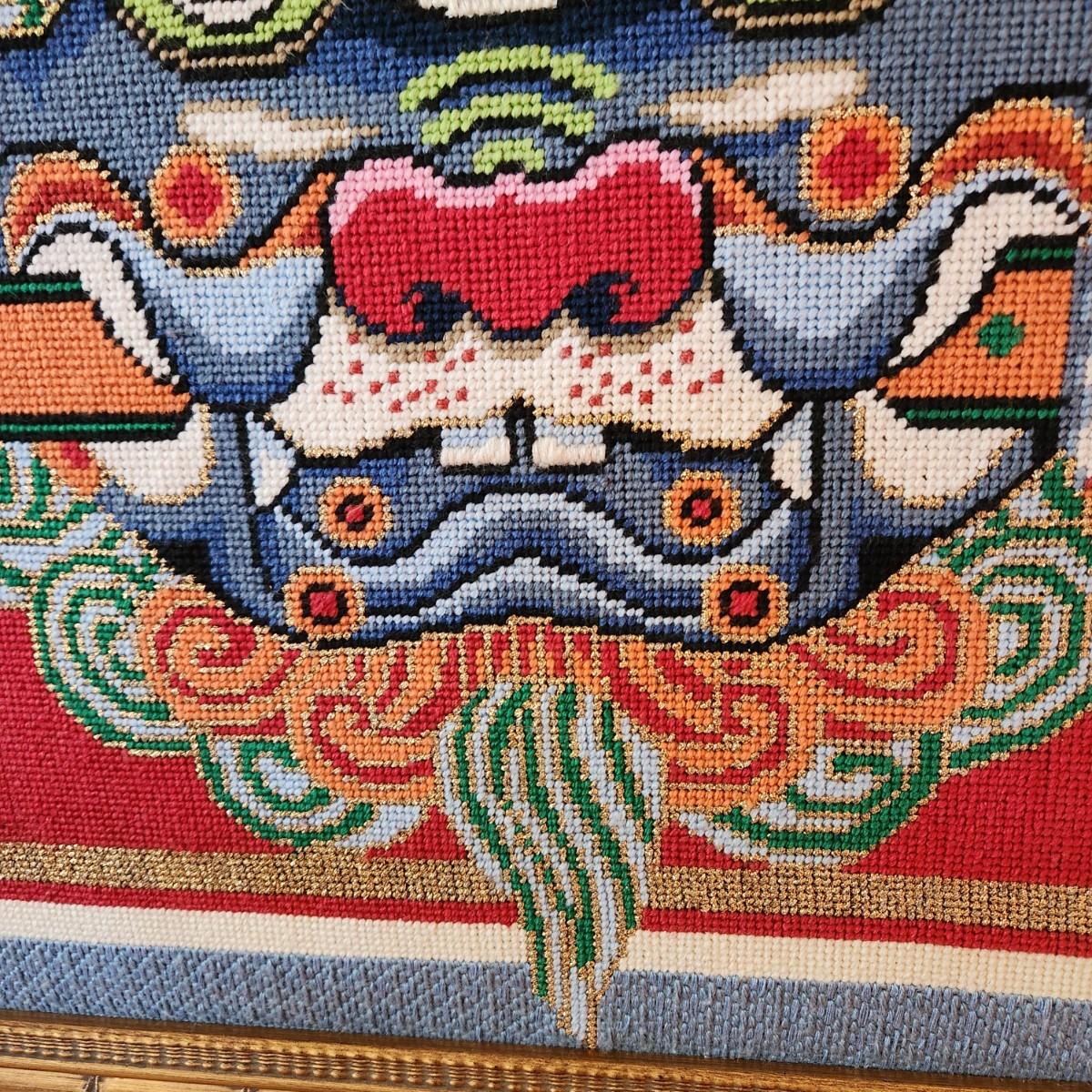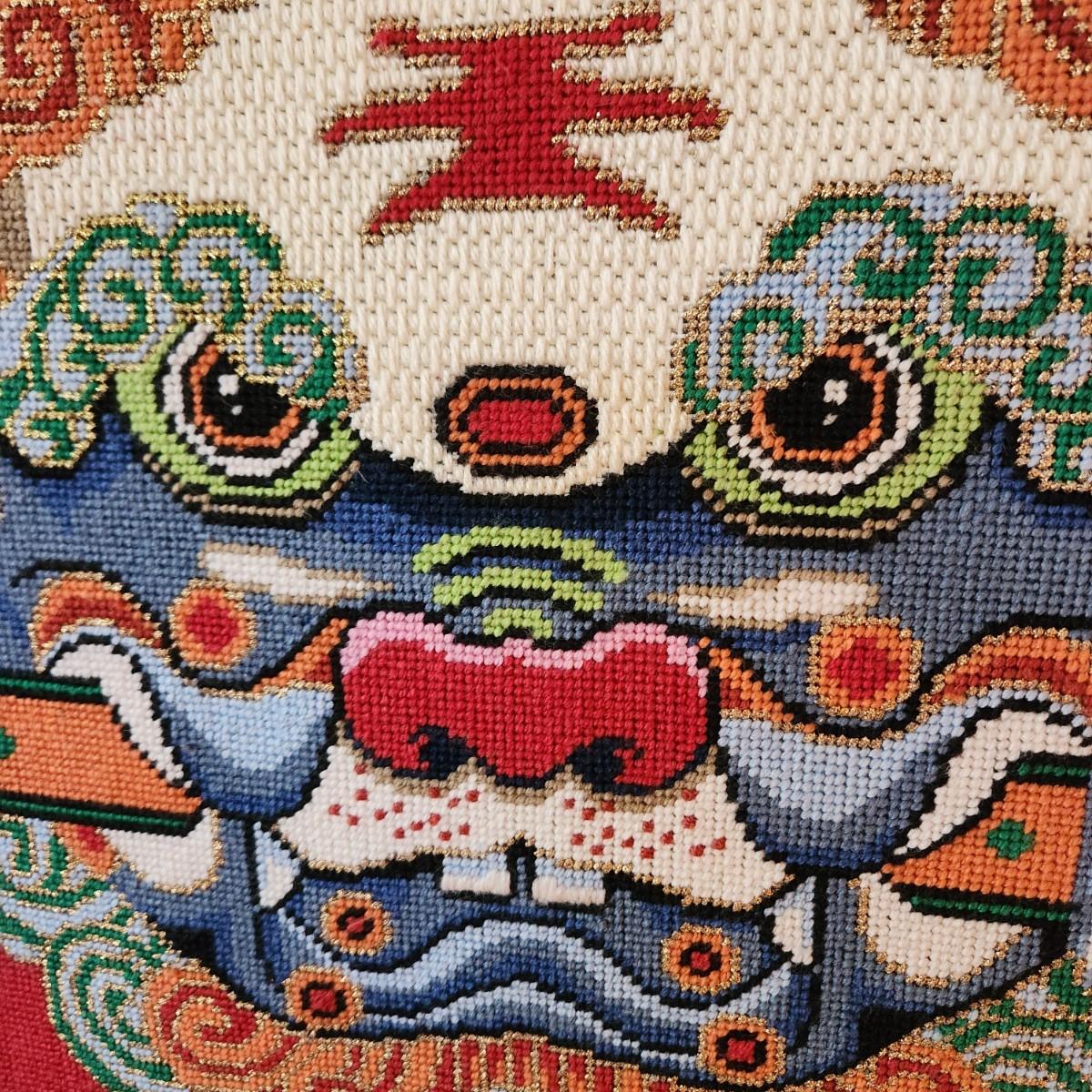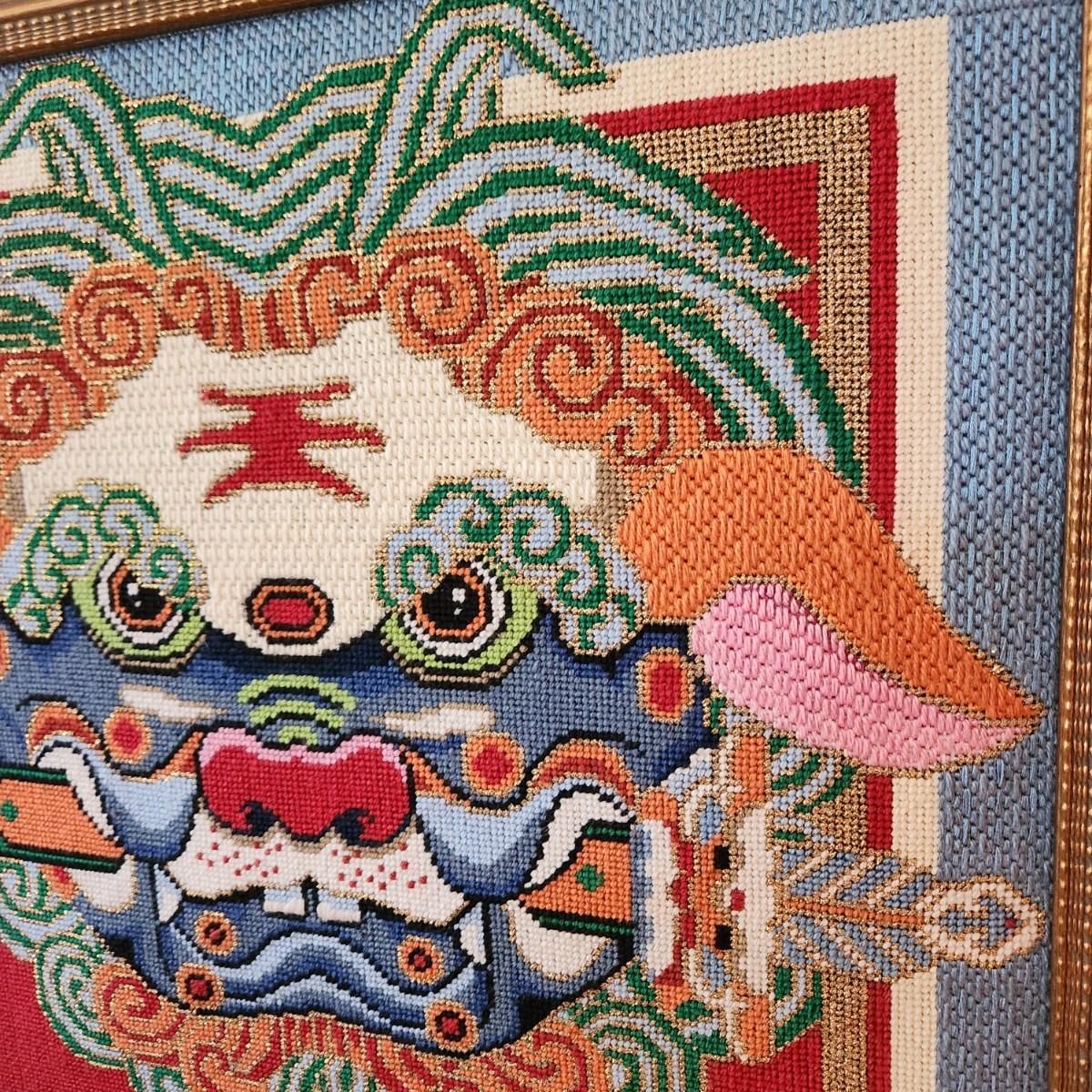 Large Framed Handmade Needlepoint Foo Dog 19x19