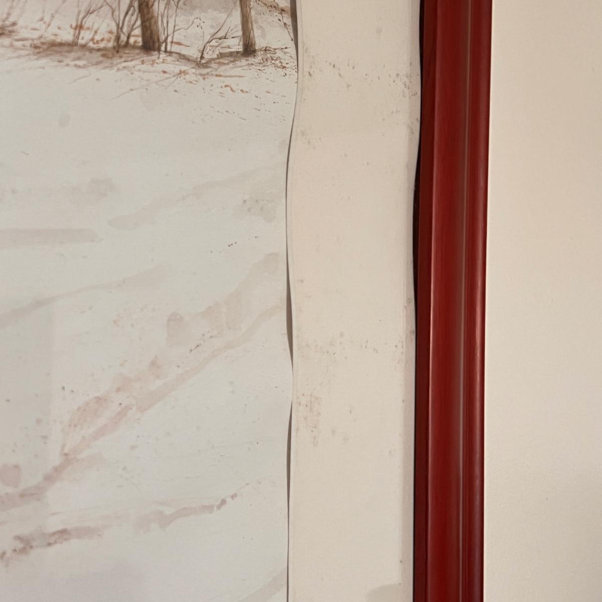 28"x40" framed and matted print of artwork entitled "Bringing Home The Christmas Tree" by Daniel Campanelli. The mat shows some rippling as shown in pic 6.