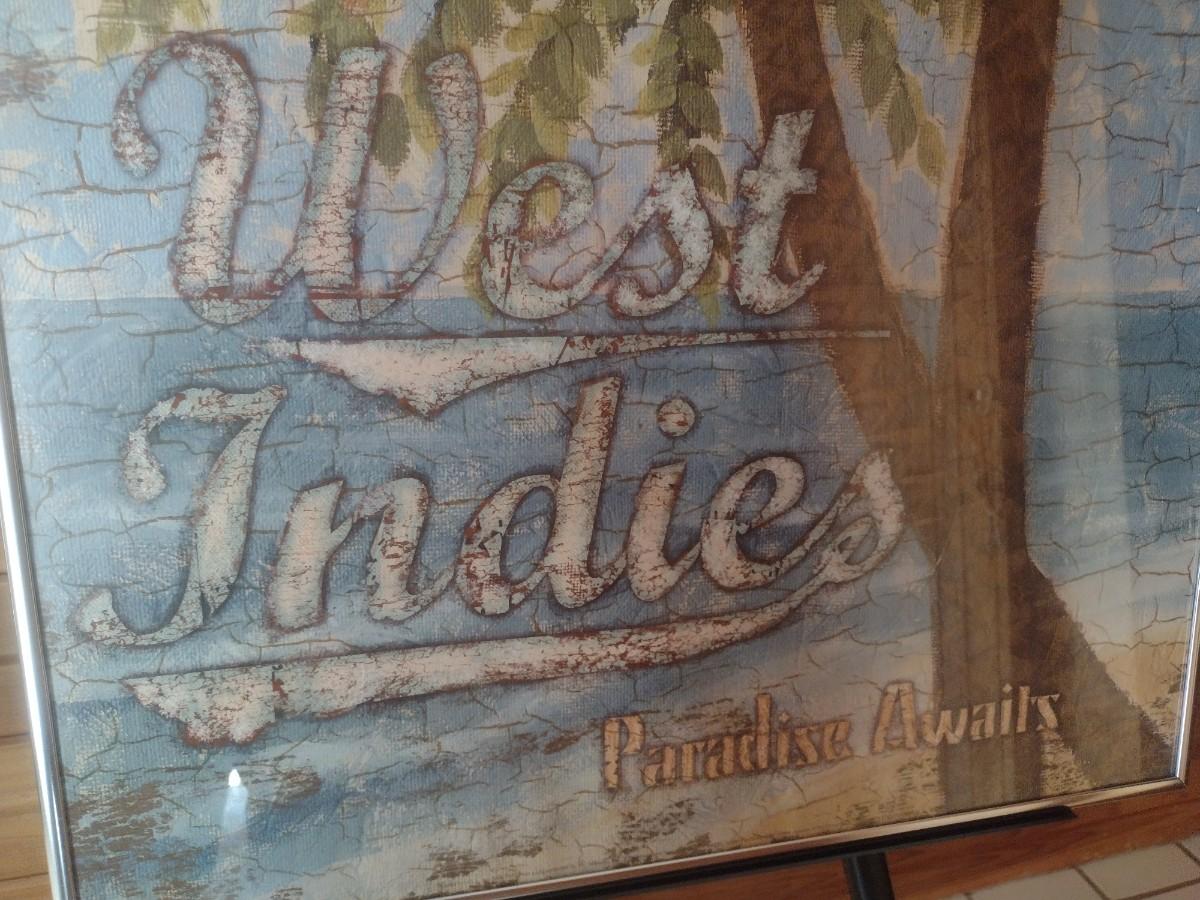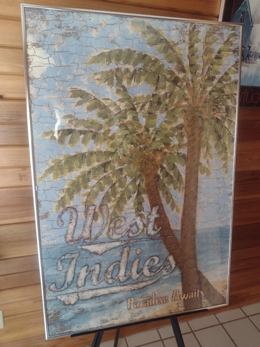 Large Framed Print West Indies with Palm Trees and Ocean. Shipping is by third party only such as UPS Store. Auction firm will make sure item is available for buyer's shipper of choice to pick item up and who will do all packing and shipping for the buyer. Buyer agrees to pay all fees associated with the shipping of this item.