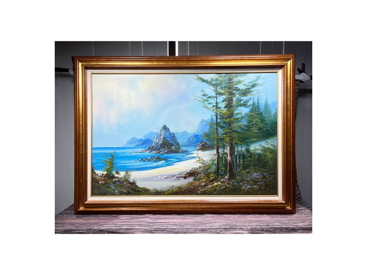 Large Framed & Signed Original Coastal Nature Landscape Oil Painting, there is no significant damage to the frame or canvas and is in god displayable condition. Check pictures for more details and for sizing.