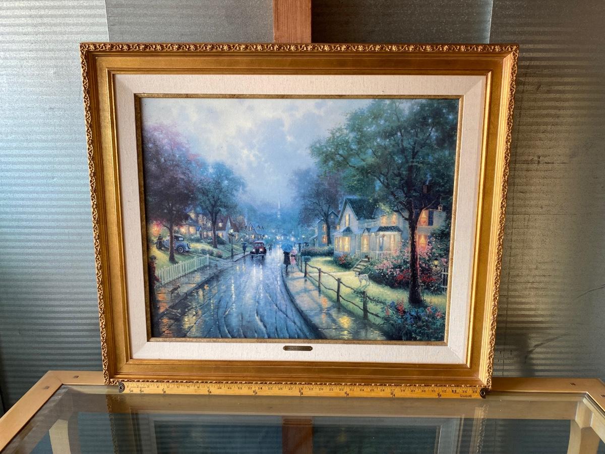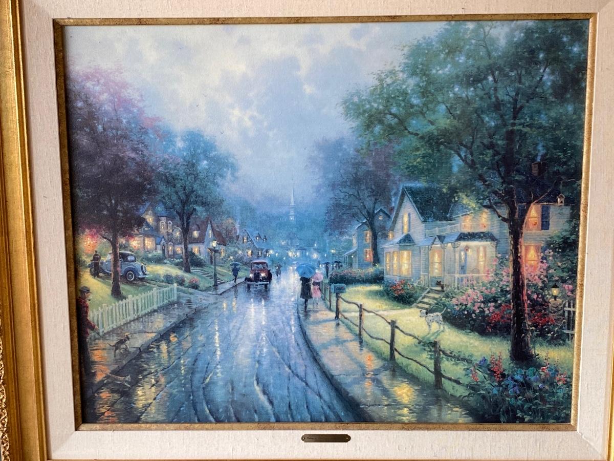 Large Framed Thomas Kinkade Lithograph Hometown Memories Walking to Church on a Sunday Evening