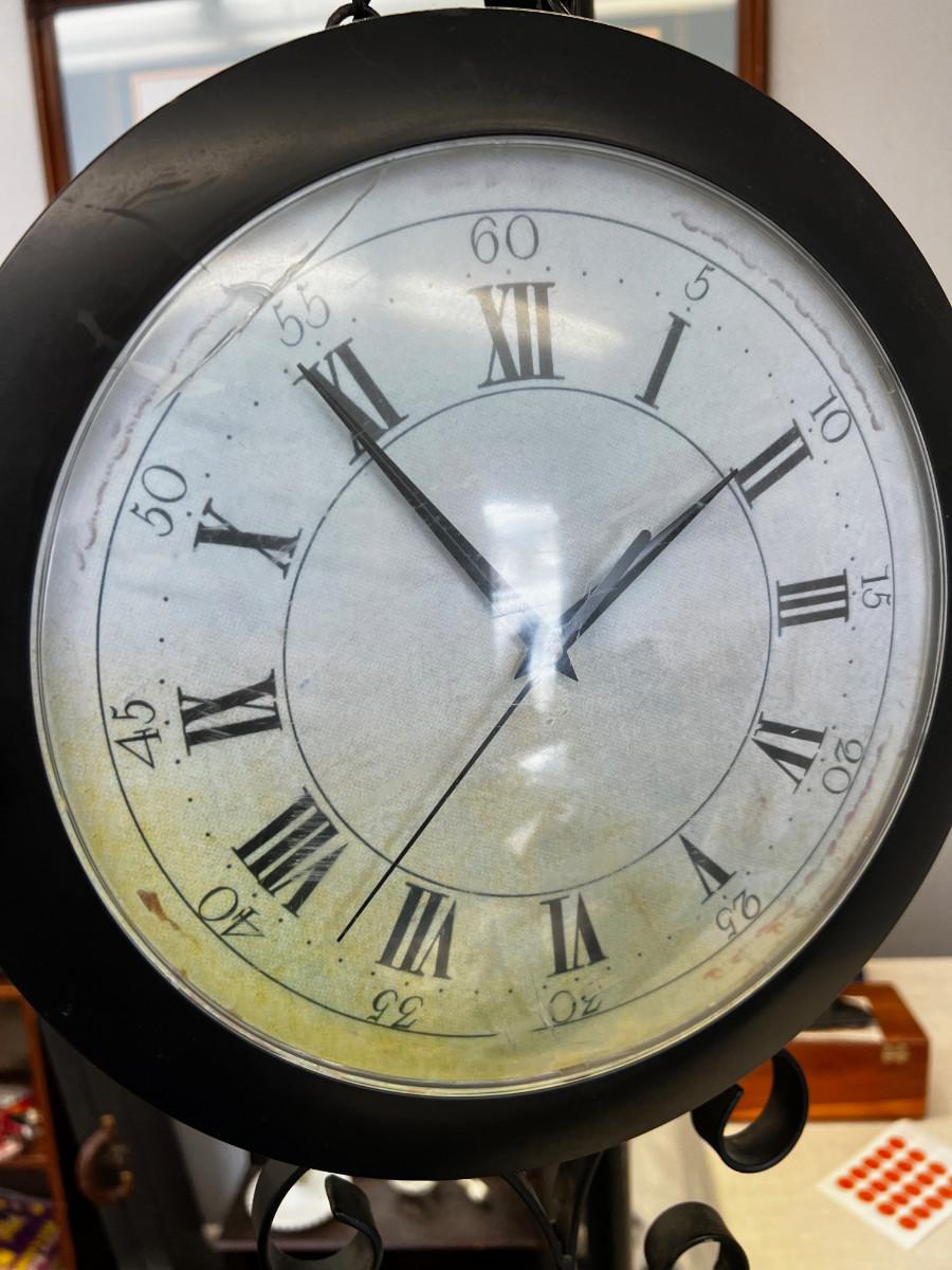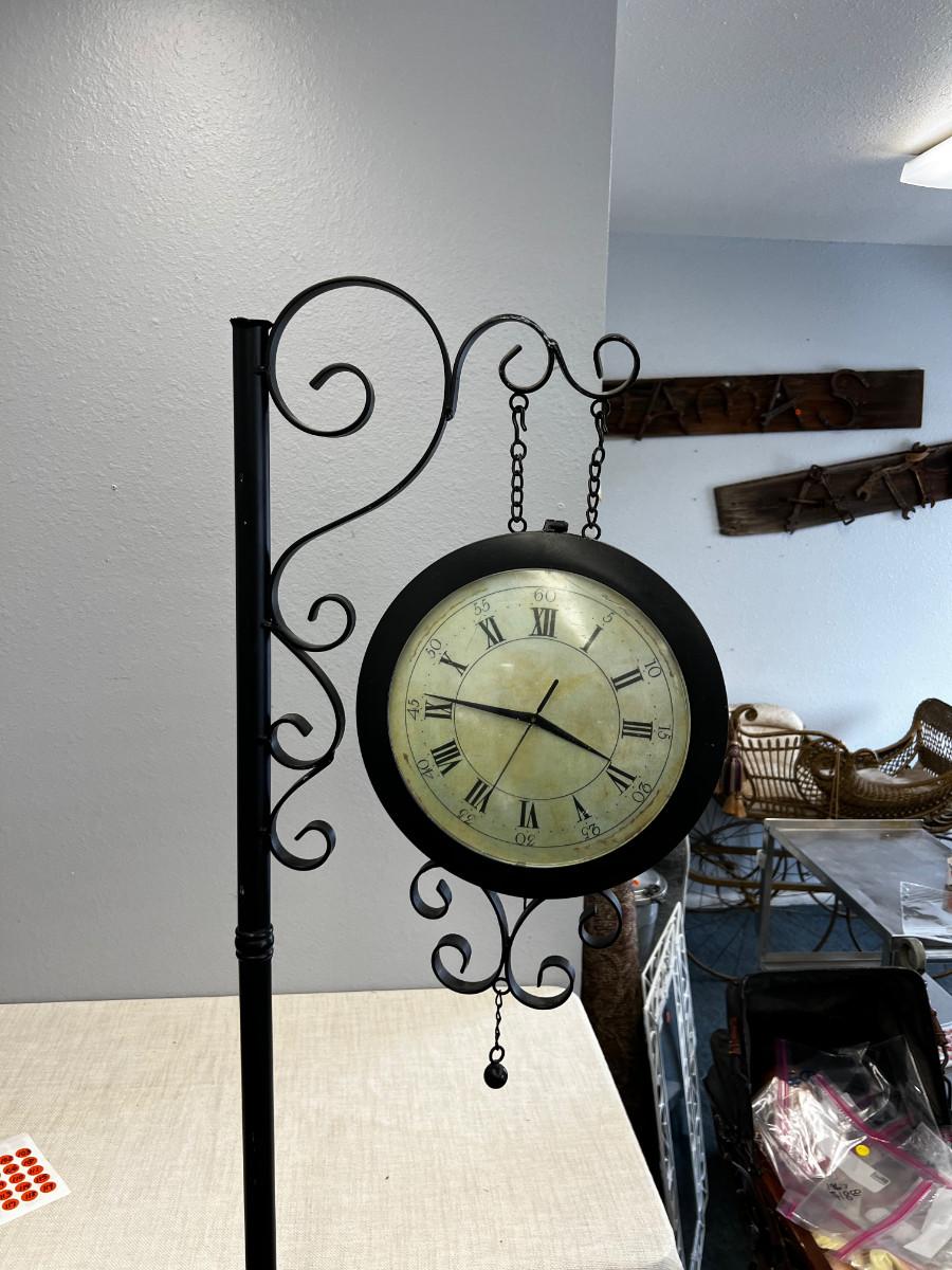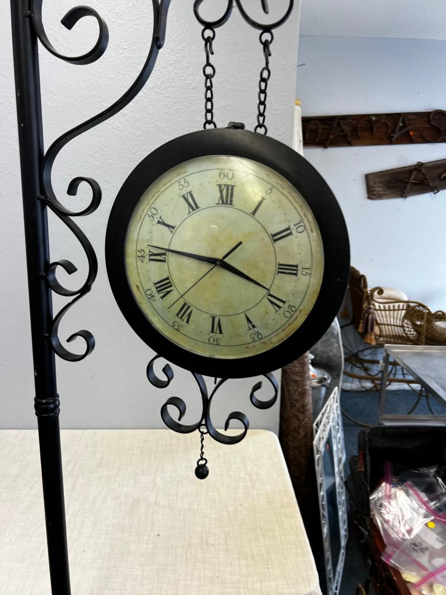 Large Free Standing CLOCK on Wrought Iron Black Stand
