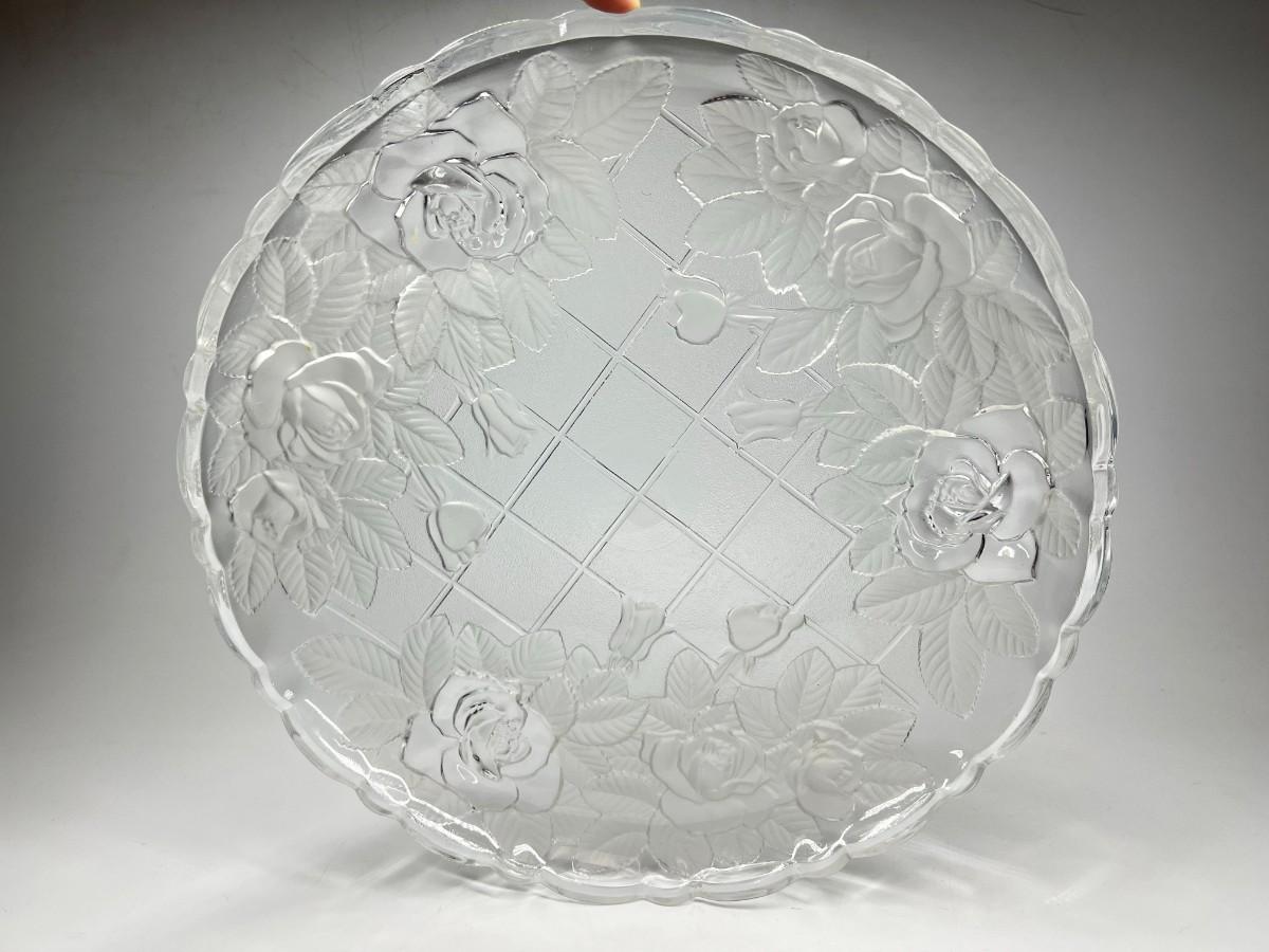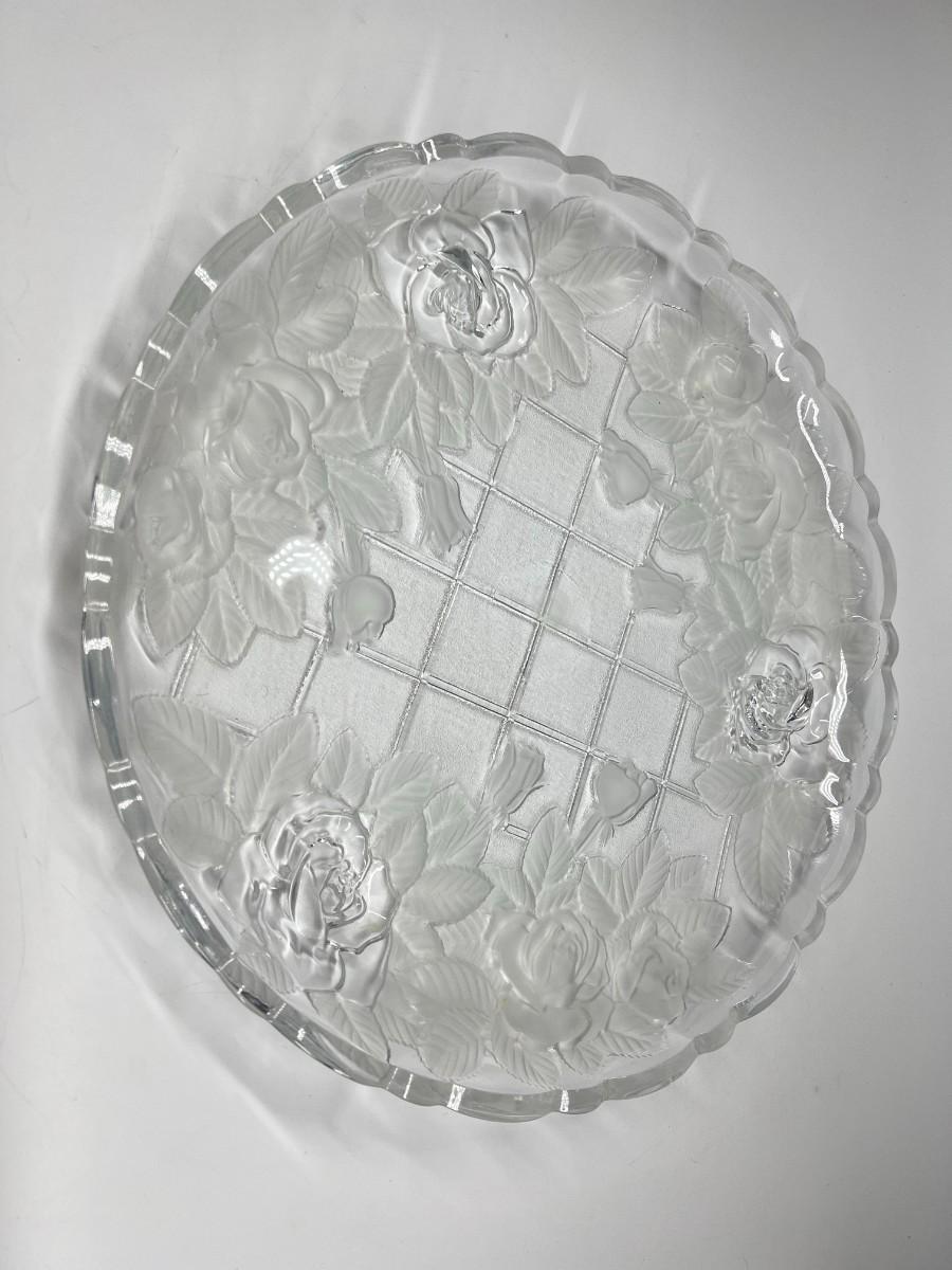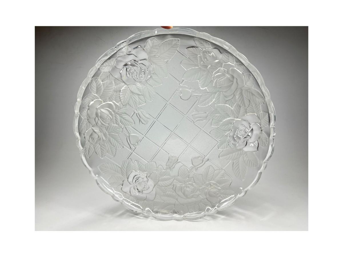 Large Frosted Crystal Glass Rose Serving Plate Dish