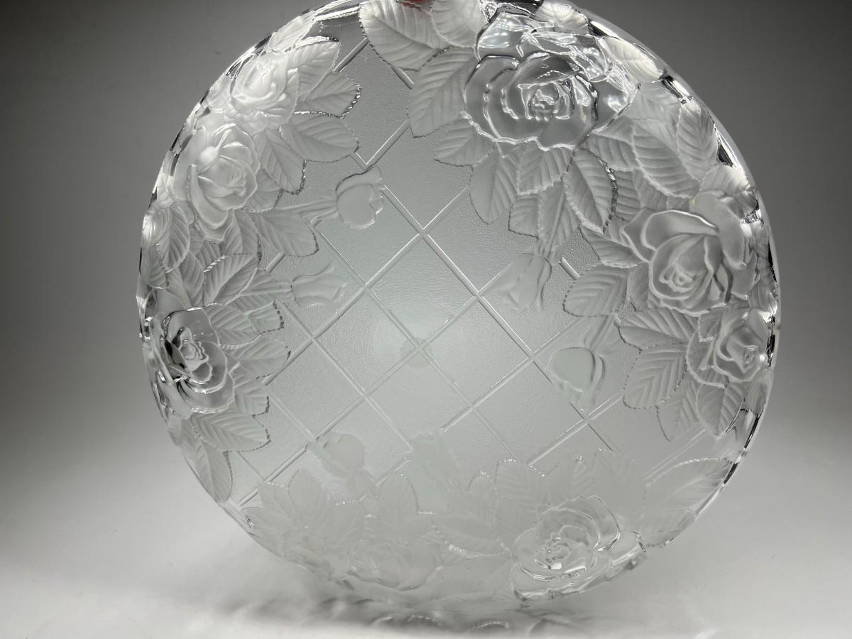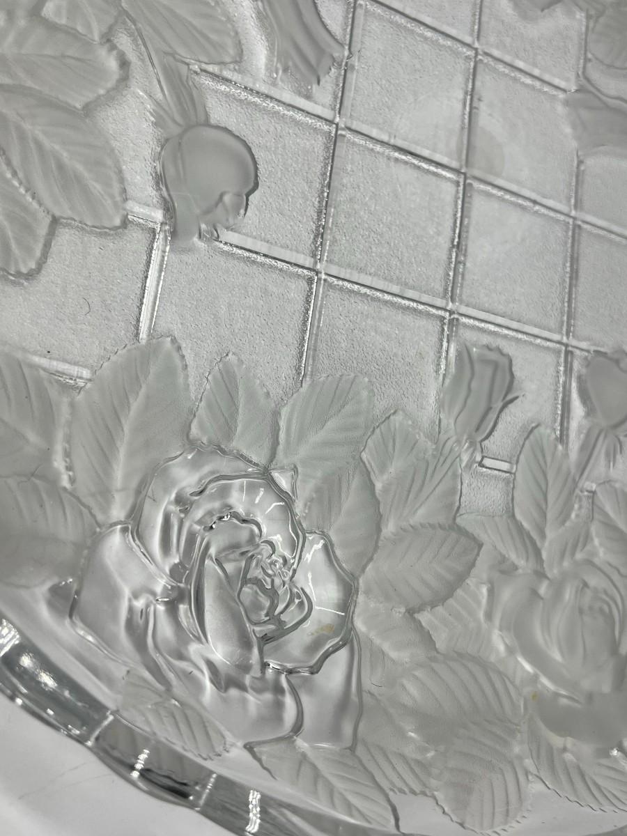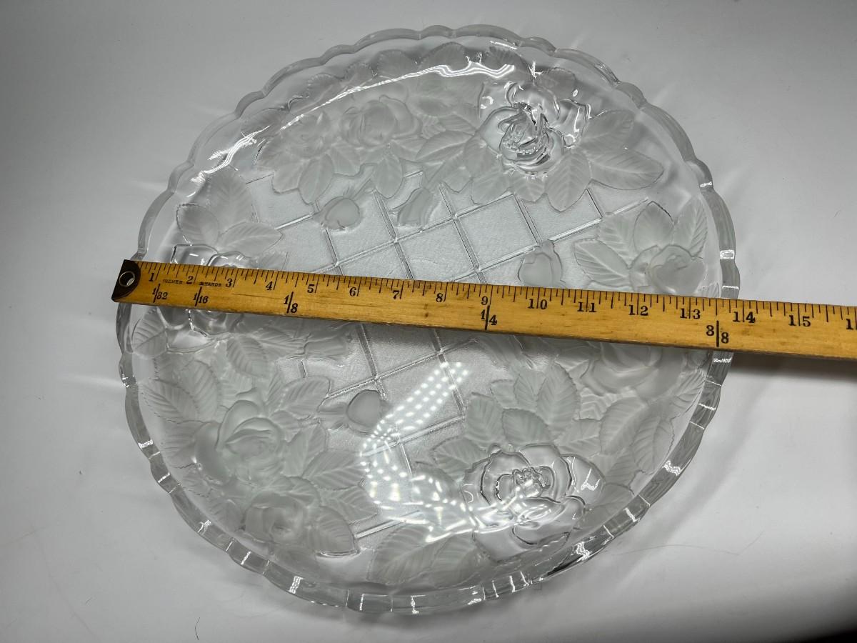 Large Frosted Crystal Glass Rose Serving Plate Dish