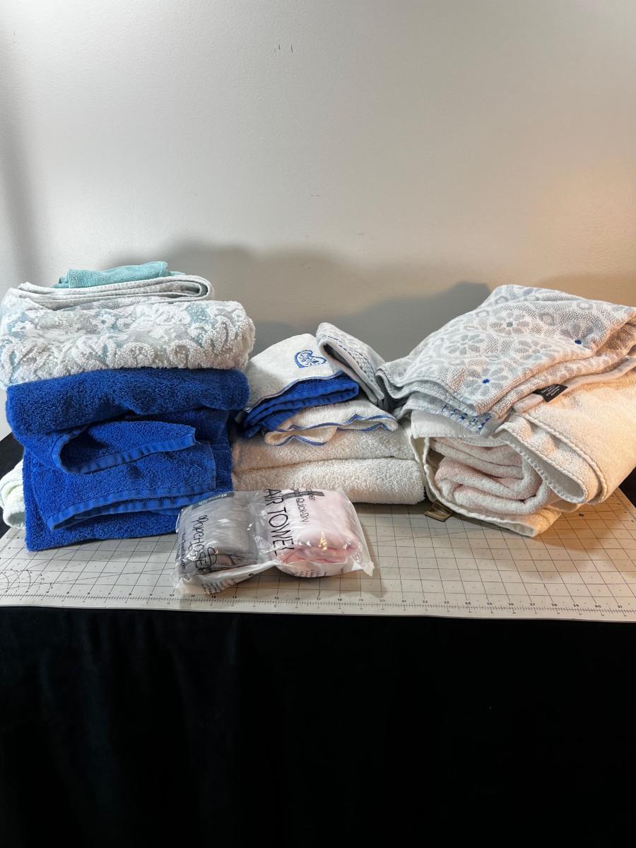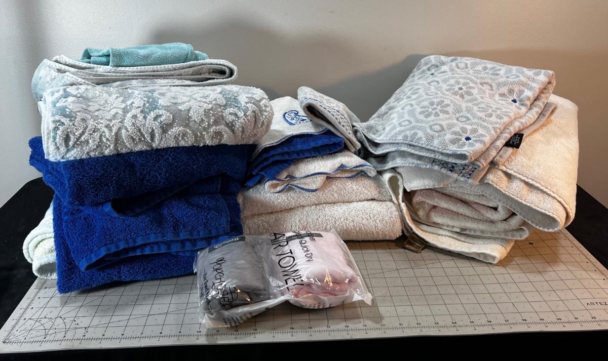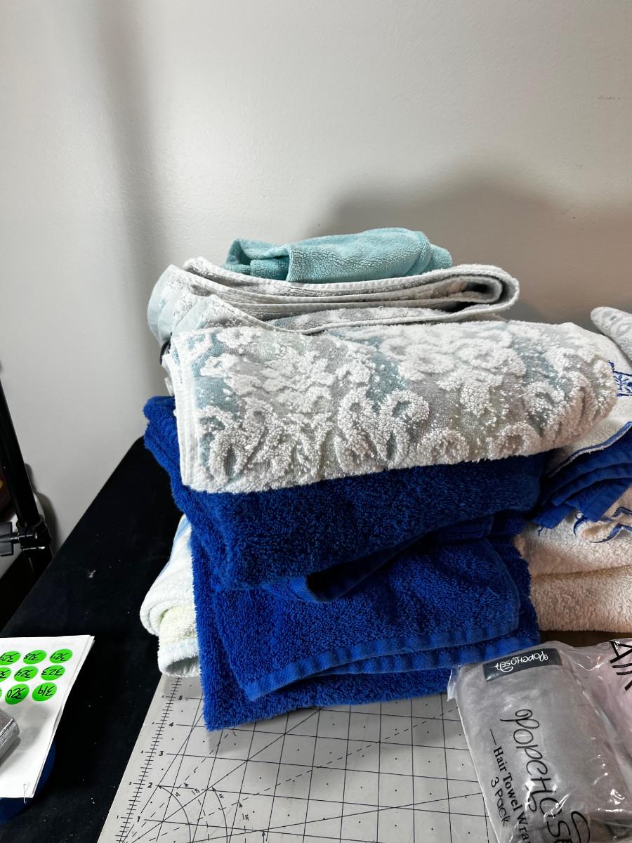 Large (garbage Bag Size) lot of Bath towels and accessories.