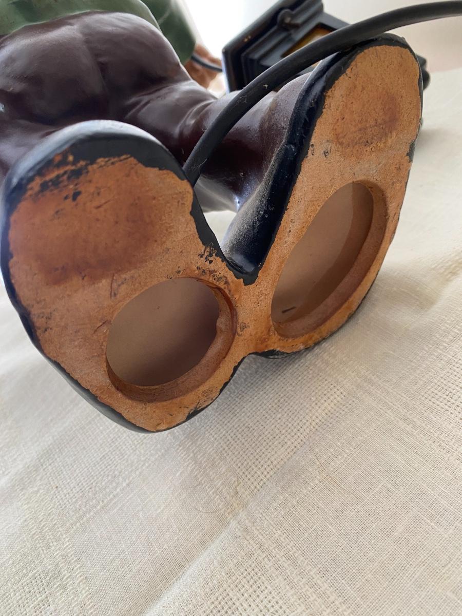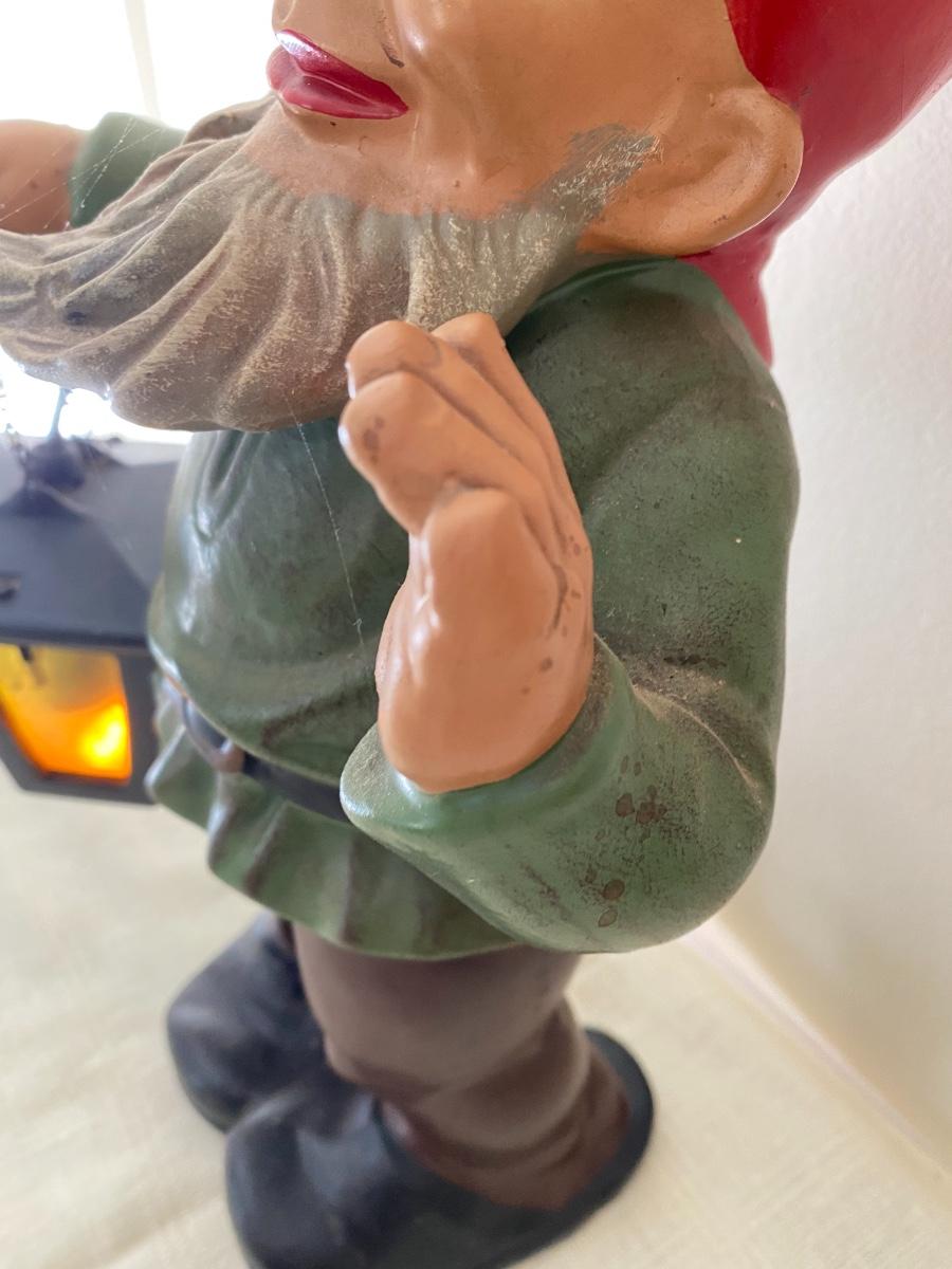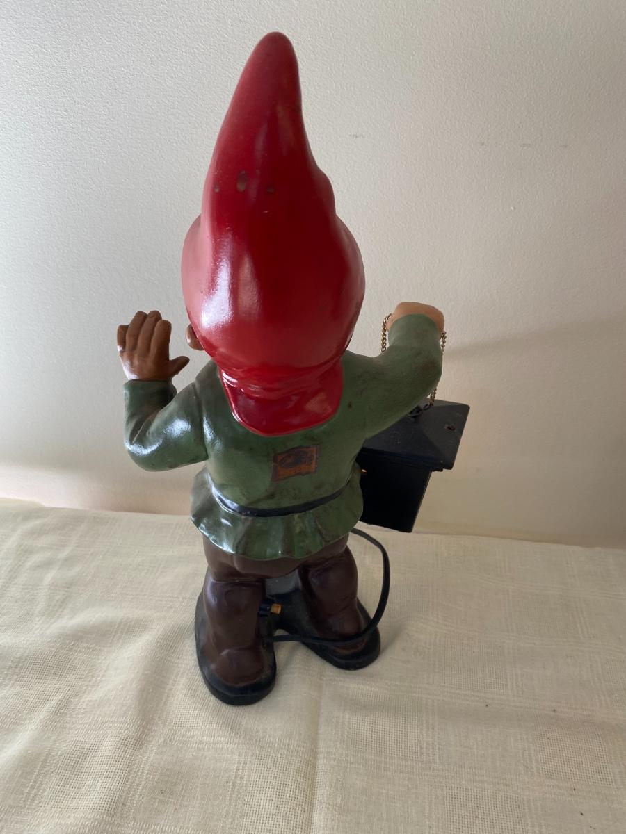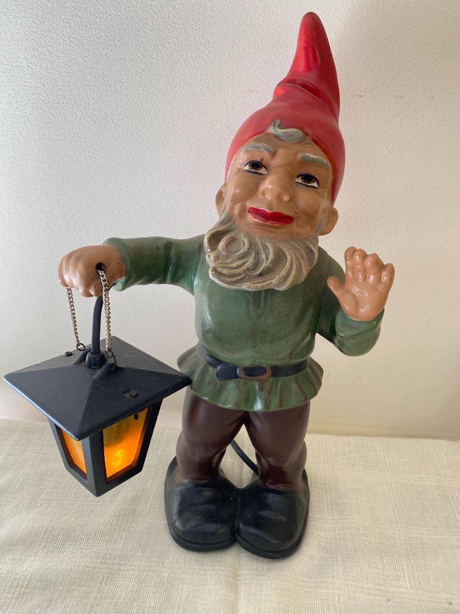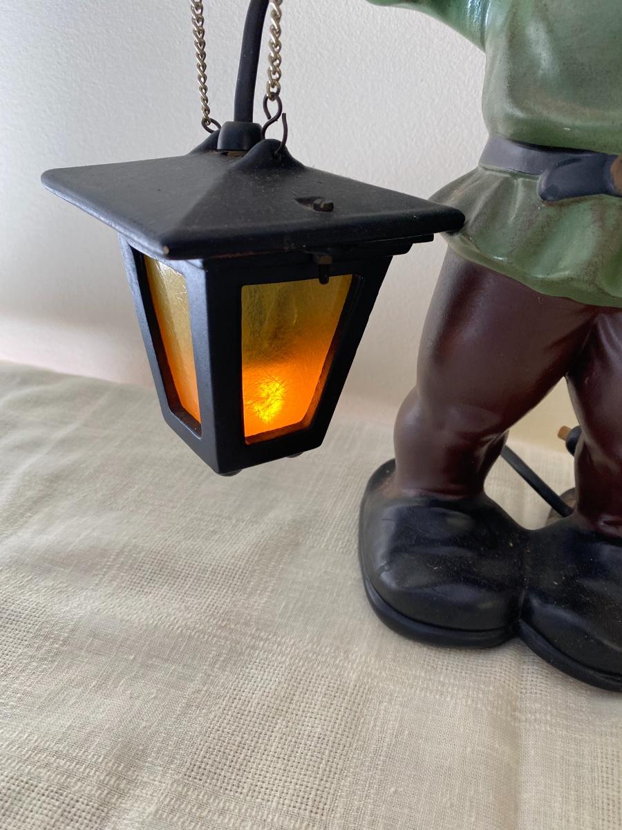 Lantern lights up. 16 inches high and has a label on the back. Located on counter behind kitchen sink. As is.