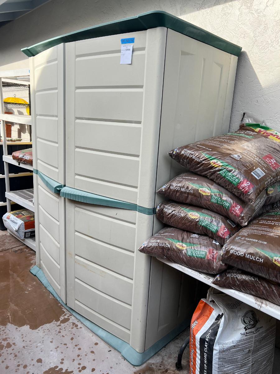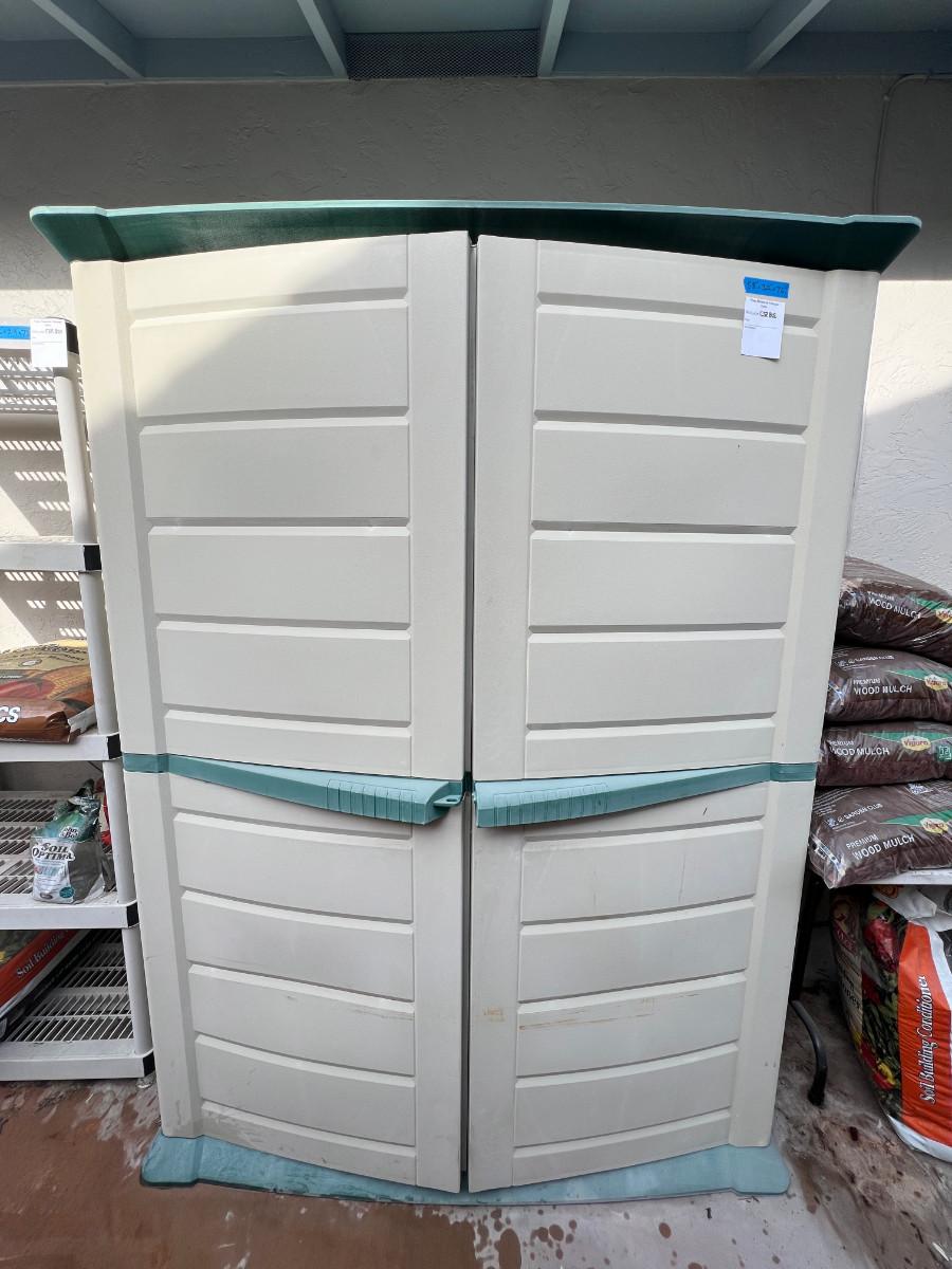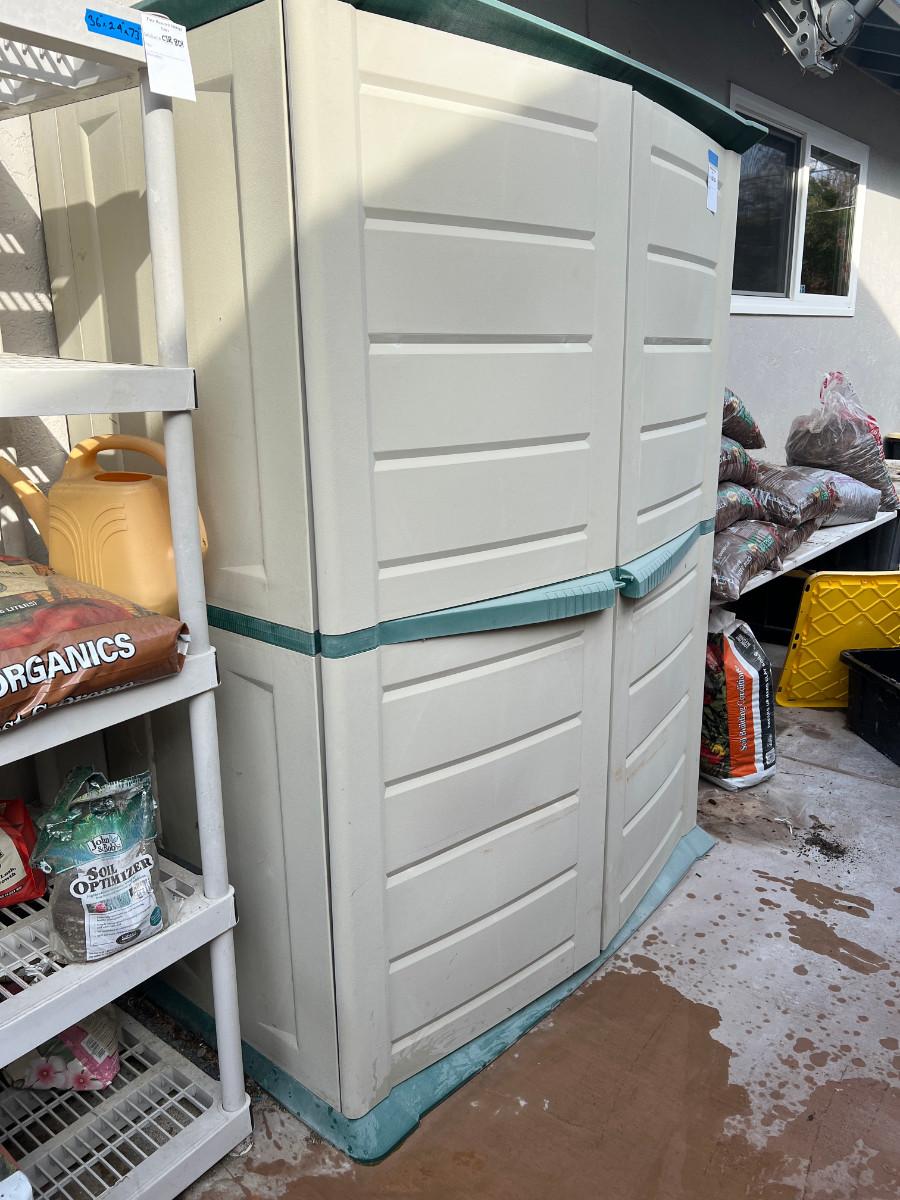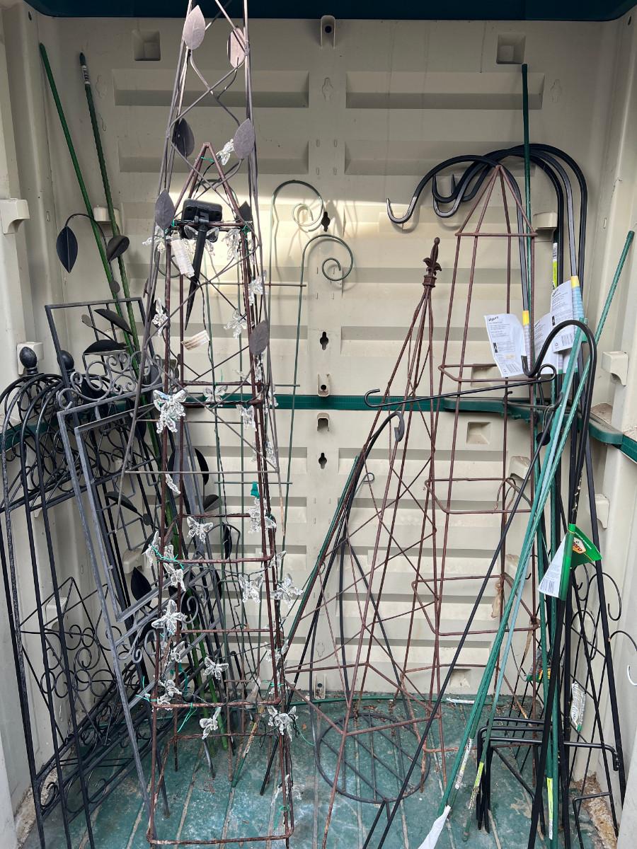 Green roof open area for garden storage 58X32X76 other items seen in the pictures are NOT in this lot. It is one shed only