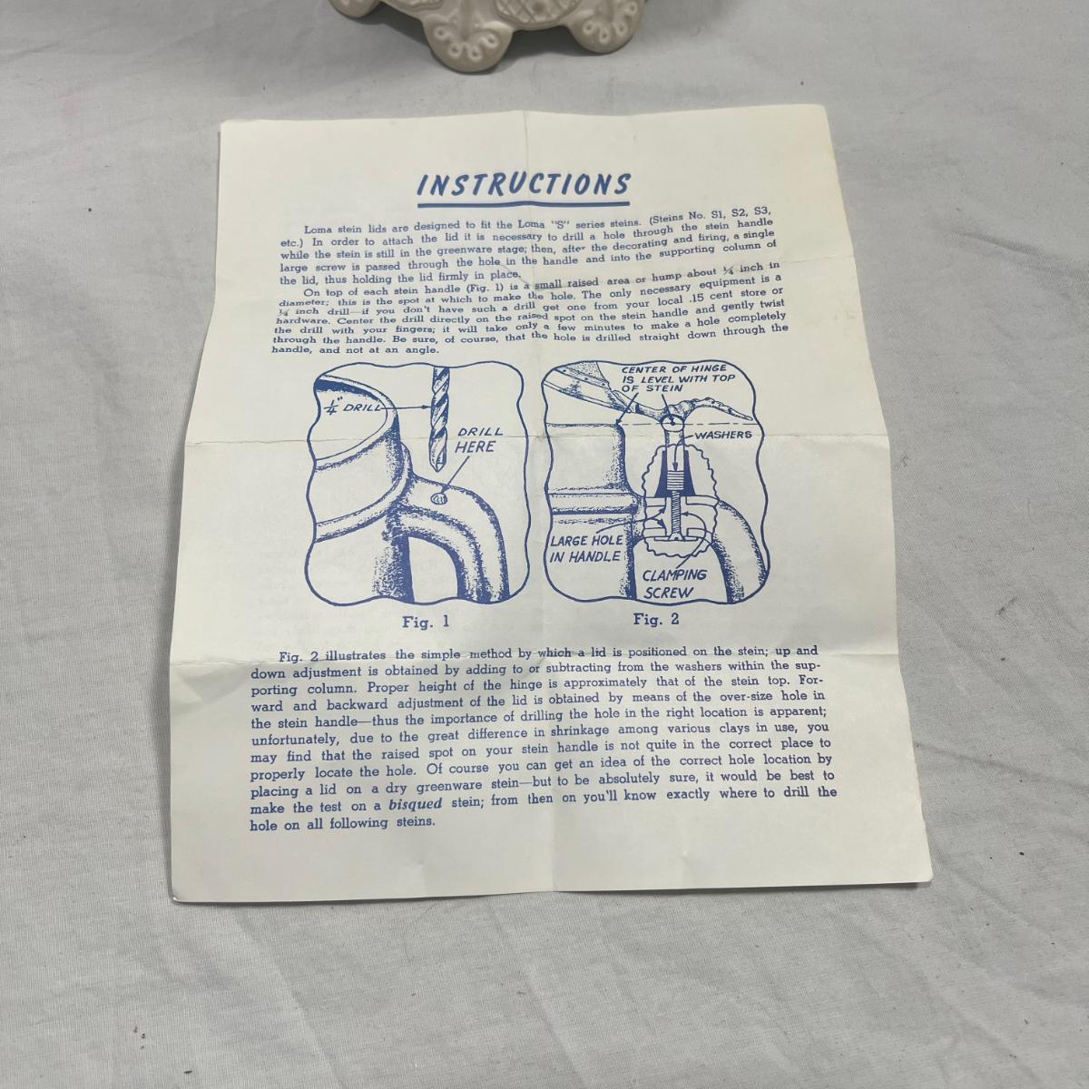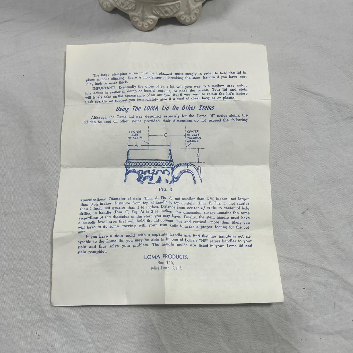 Large Ceramic German Stein, Loma marked on the bottom. Lid is removable, comes with instructions on the lid