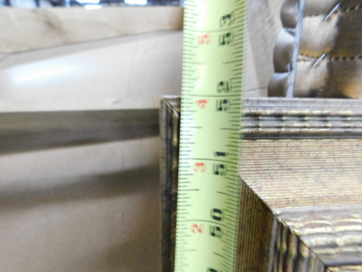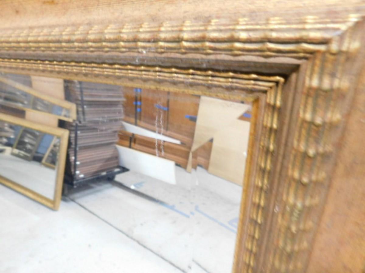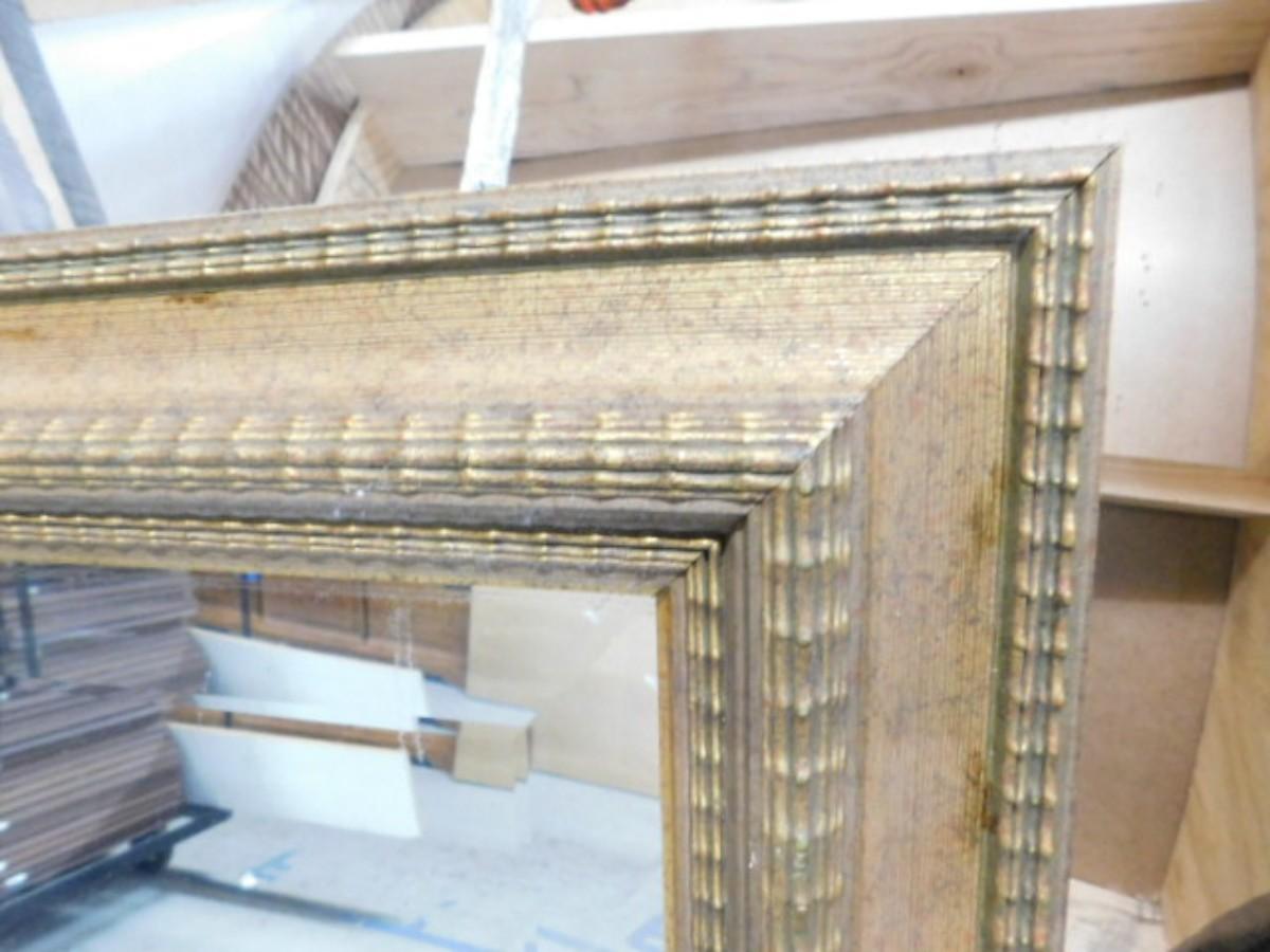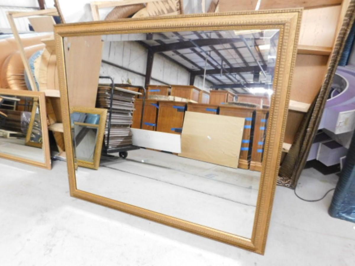 Large Gilt Frame Beveled Wall Mirror 52" Choice A Expect some wear or scratches to the finish. Shipping option available via freight or local mover at Buyer's expense. Buyer must have all shipping scheduled within the stated dates and times of pickup. Recommended local mover is Beaty Bros. Moving 828-201-2982