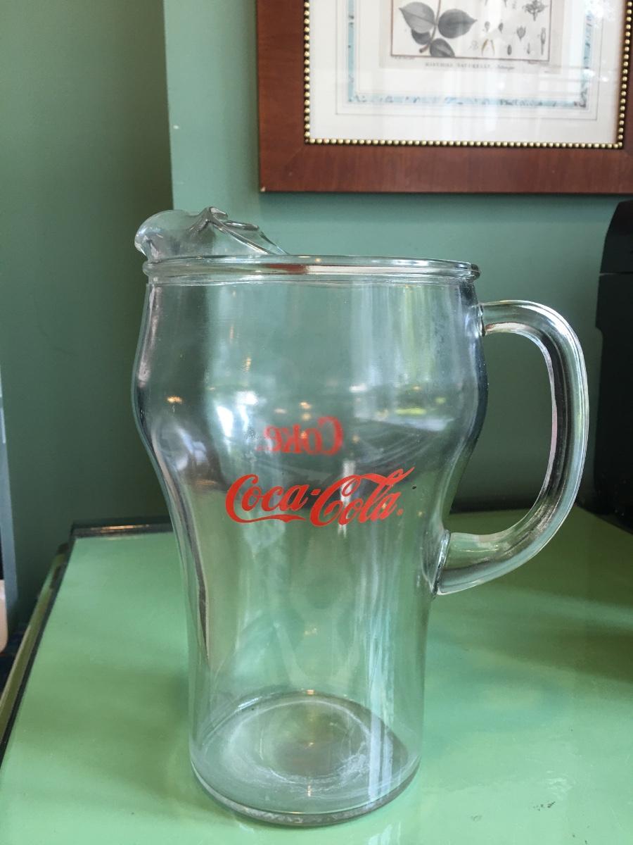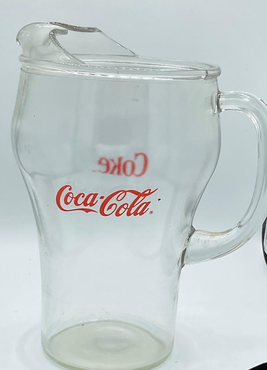 Mid-Century modern glass Coca-Cola pitcher holds 64 oz. This pitcher is in good condition no chips or cracks 9” tall.
