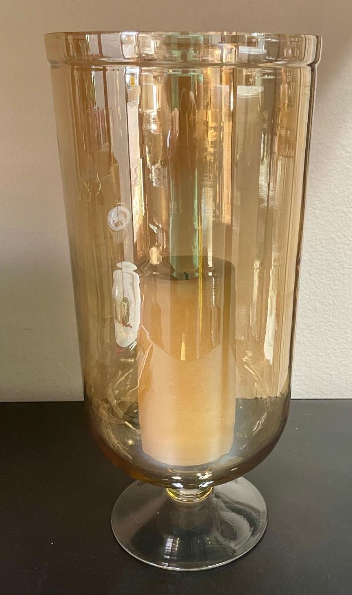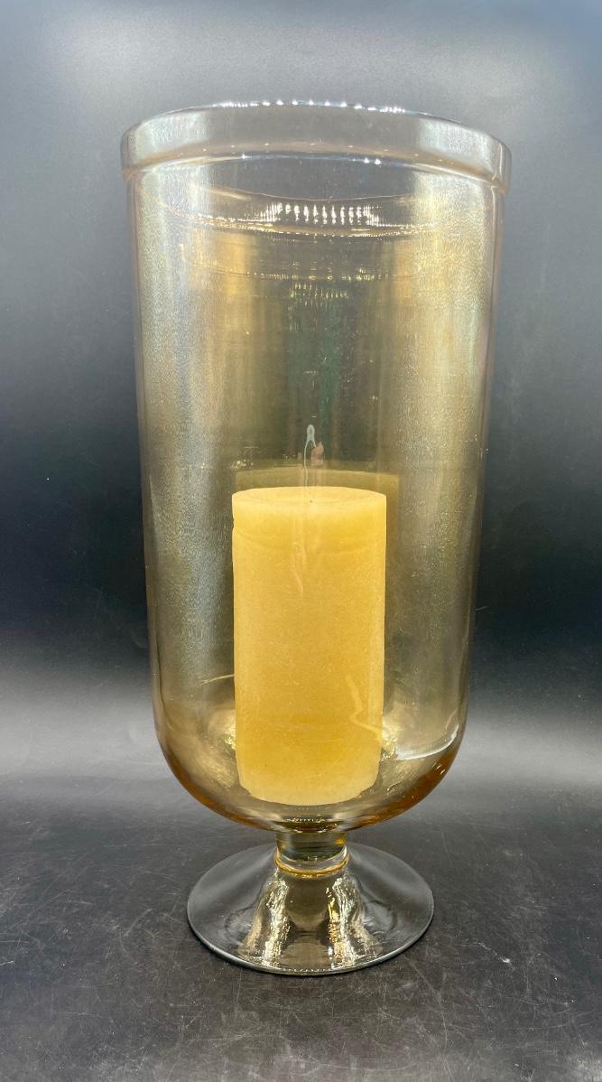 Large Amber Glass Hurricane Lamp