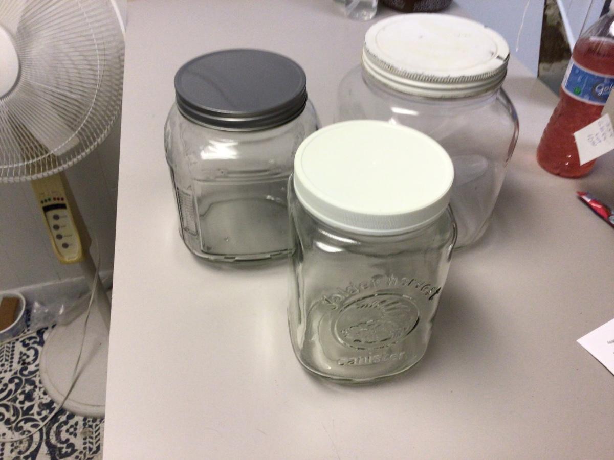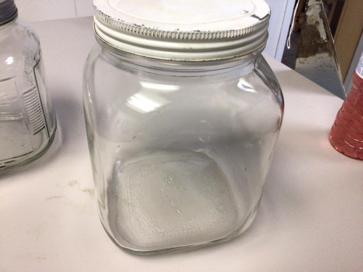 This is a great lot of glass jars/canisters. All have lids for them.