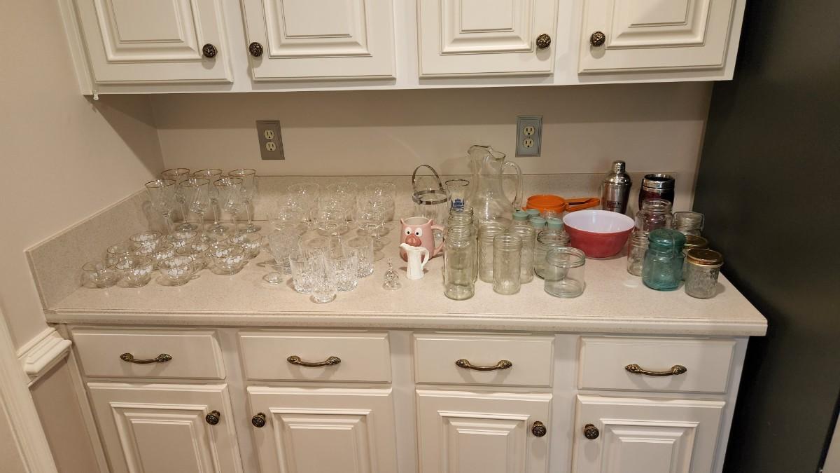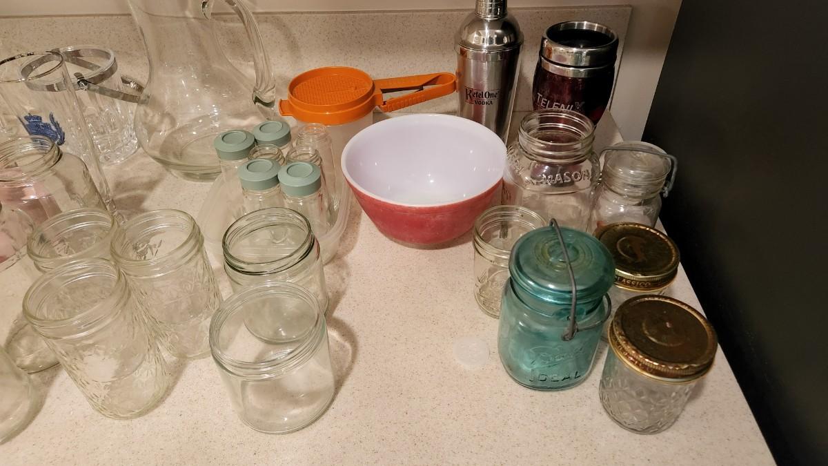 Large Glass Lot Punch glasses , Spice Jars,