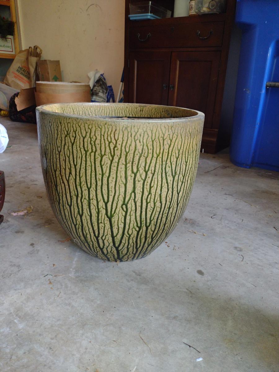 Large, Glazed Ceramic Planter Pot- Approx 16" in Diameter, 14 3/4" Tall
