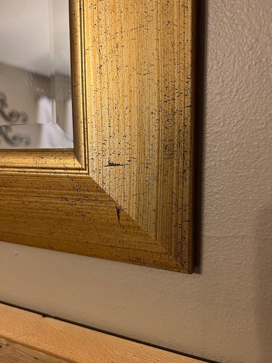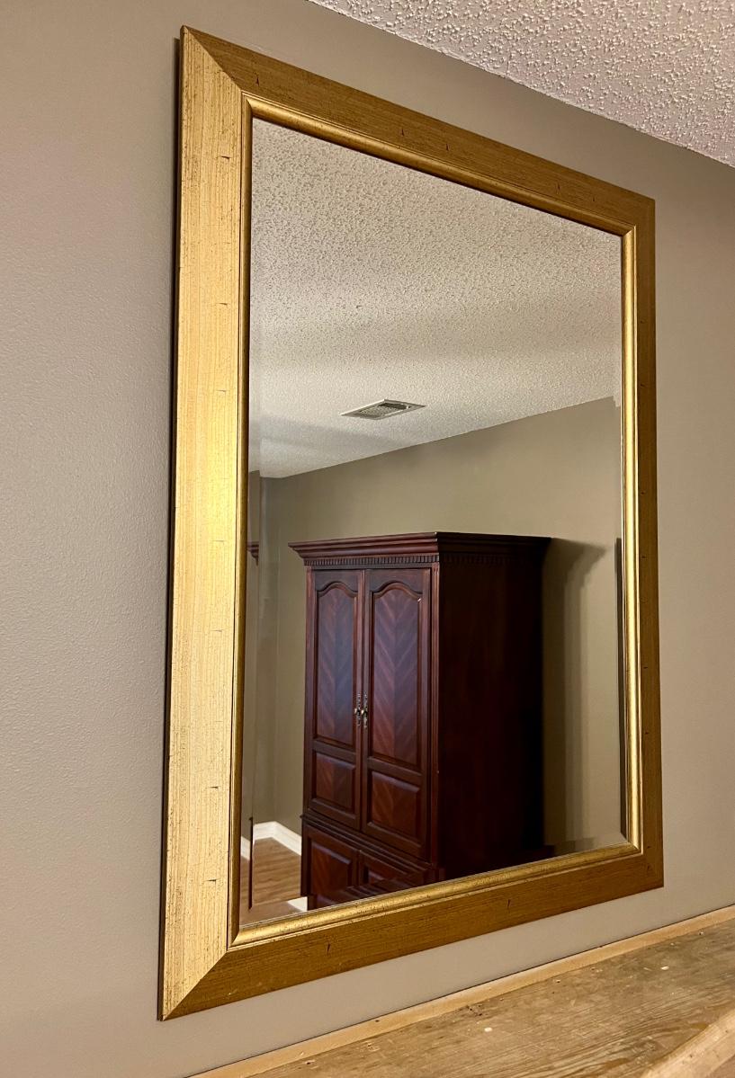 Gold Framed Mirror Measures as pictured 41 inches tall, 29 1/2 inches wide.