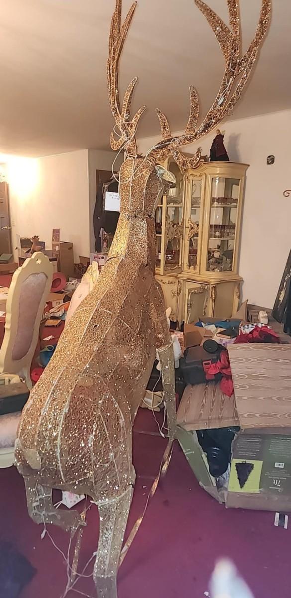 Gold glitter covers this large piece. He is ready for your home to decorate for this Christmas.