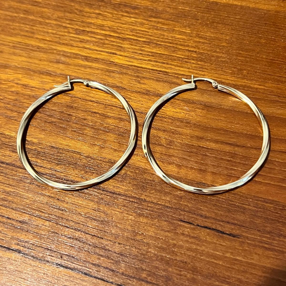 Large Gold Hoop Earrings Marked 14k