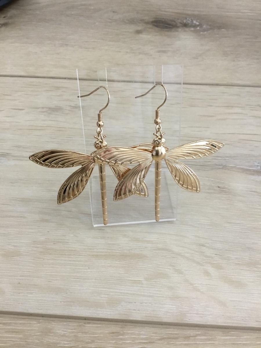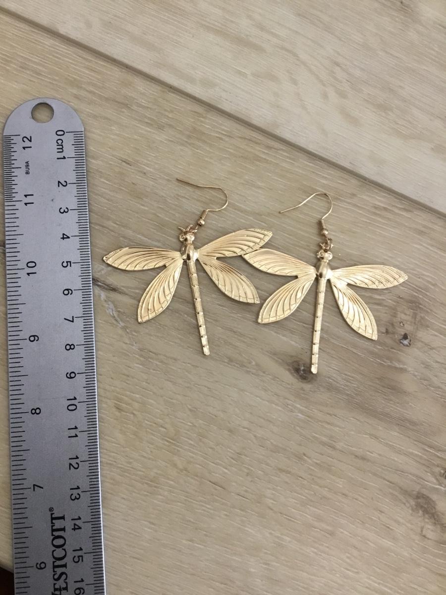 Large gold tone dragonfly earrings