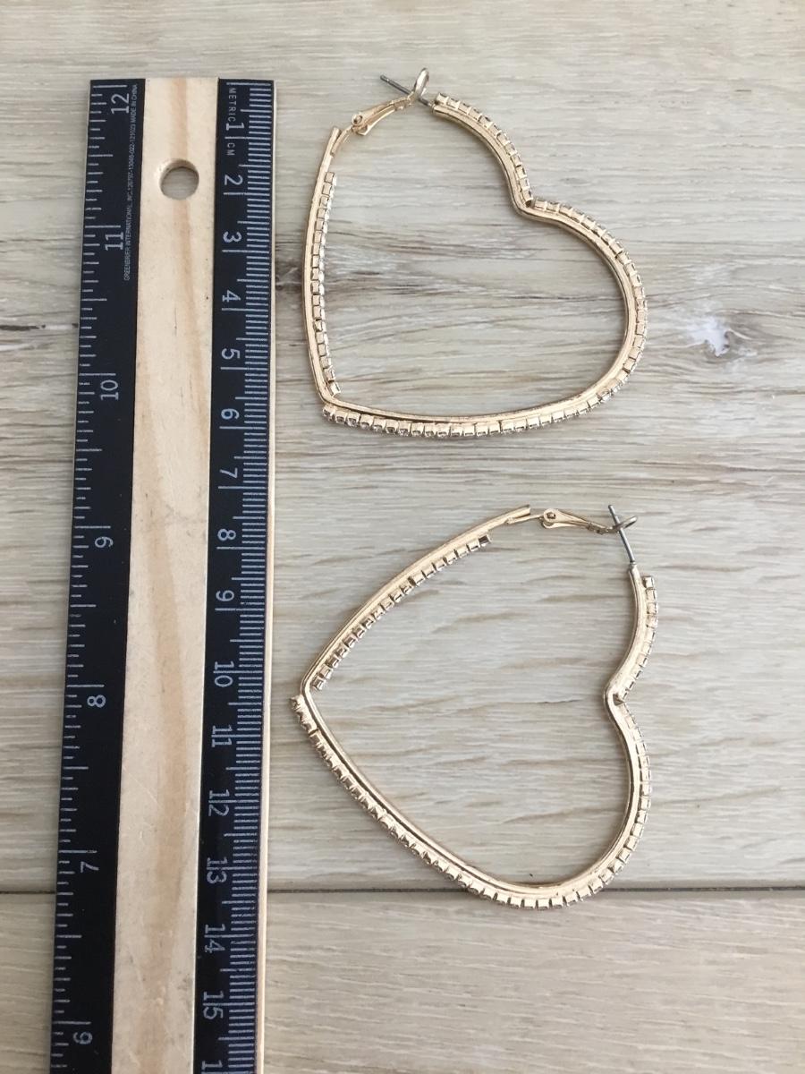 Large gold tone heart hoop earrings