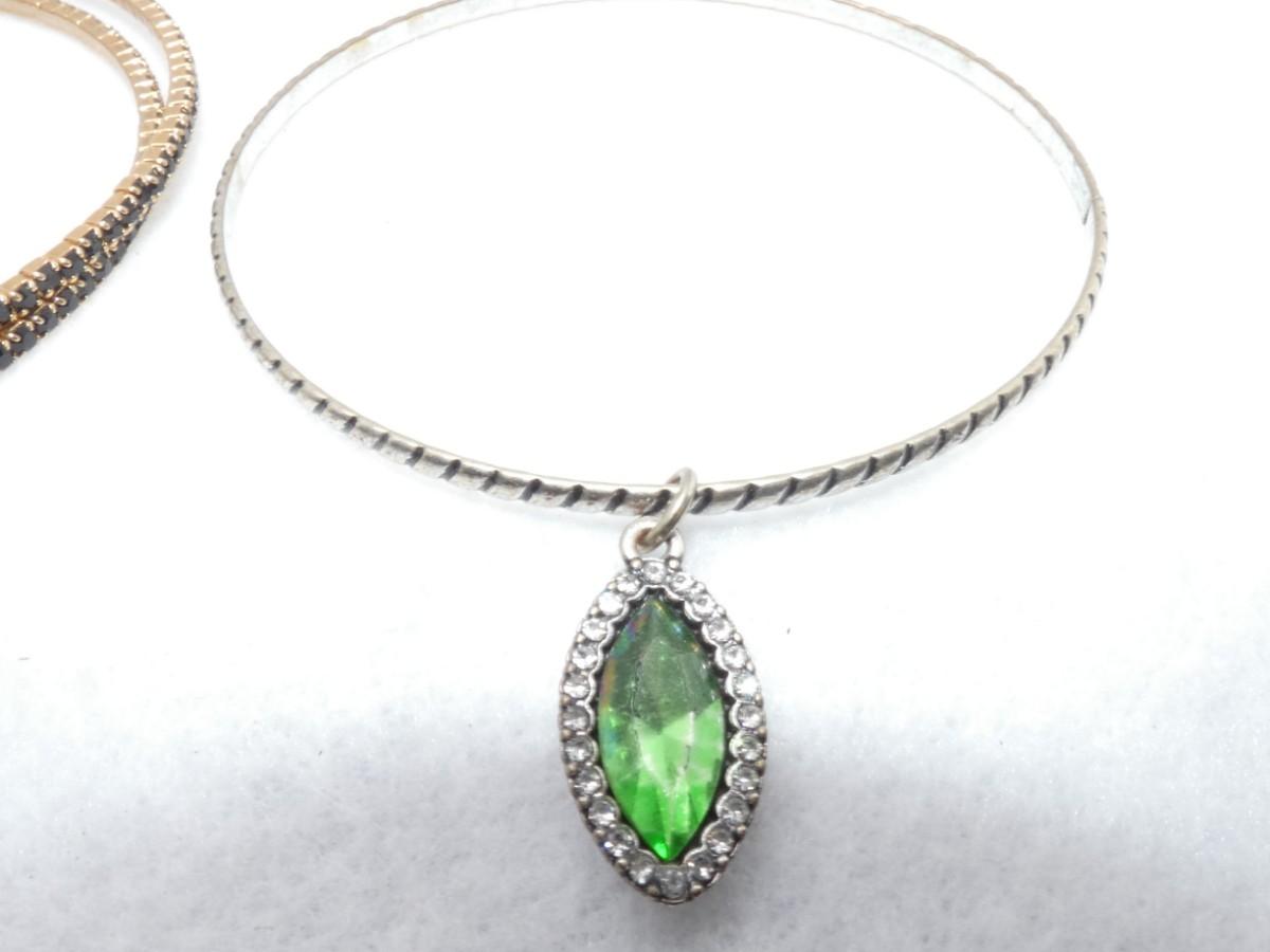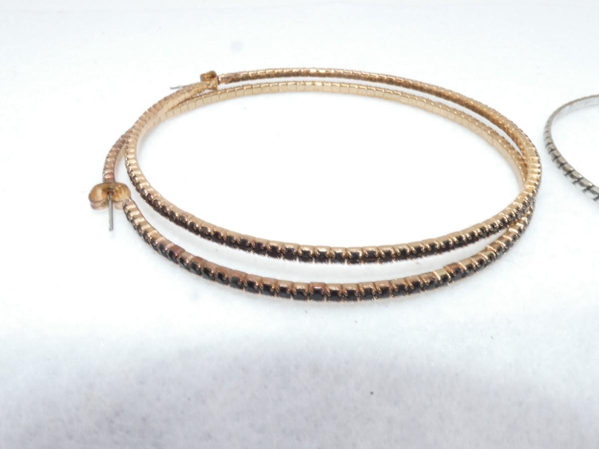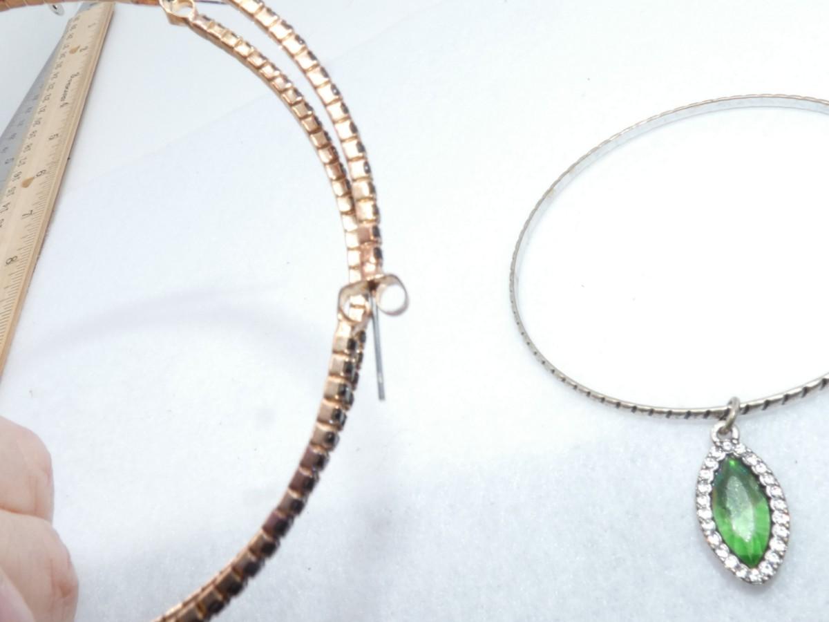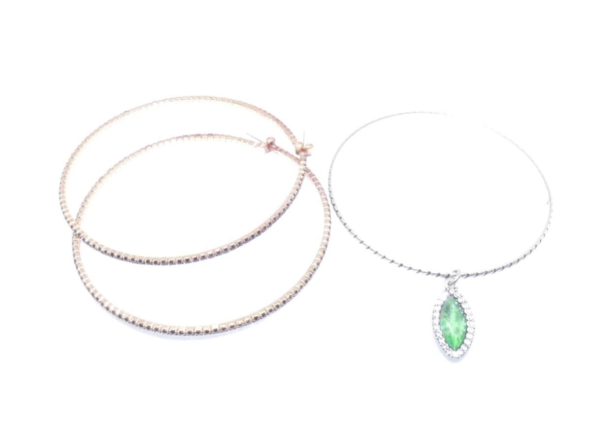 LARGE Gold Tone Rhinestone HOOP Earrings, Rhinestone Green Bangle