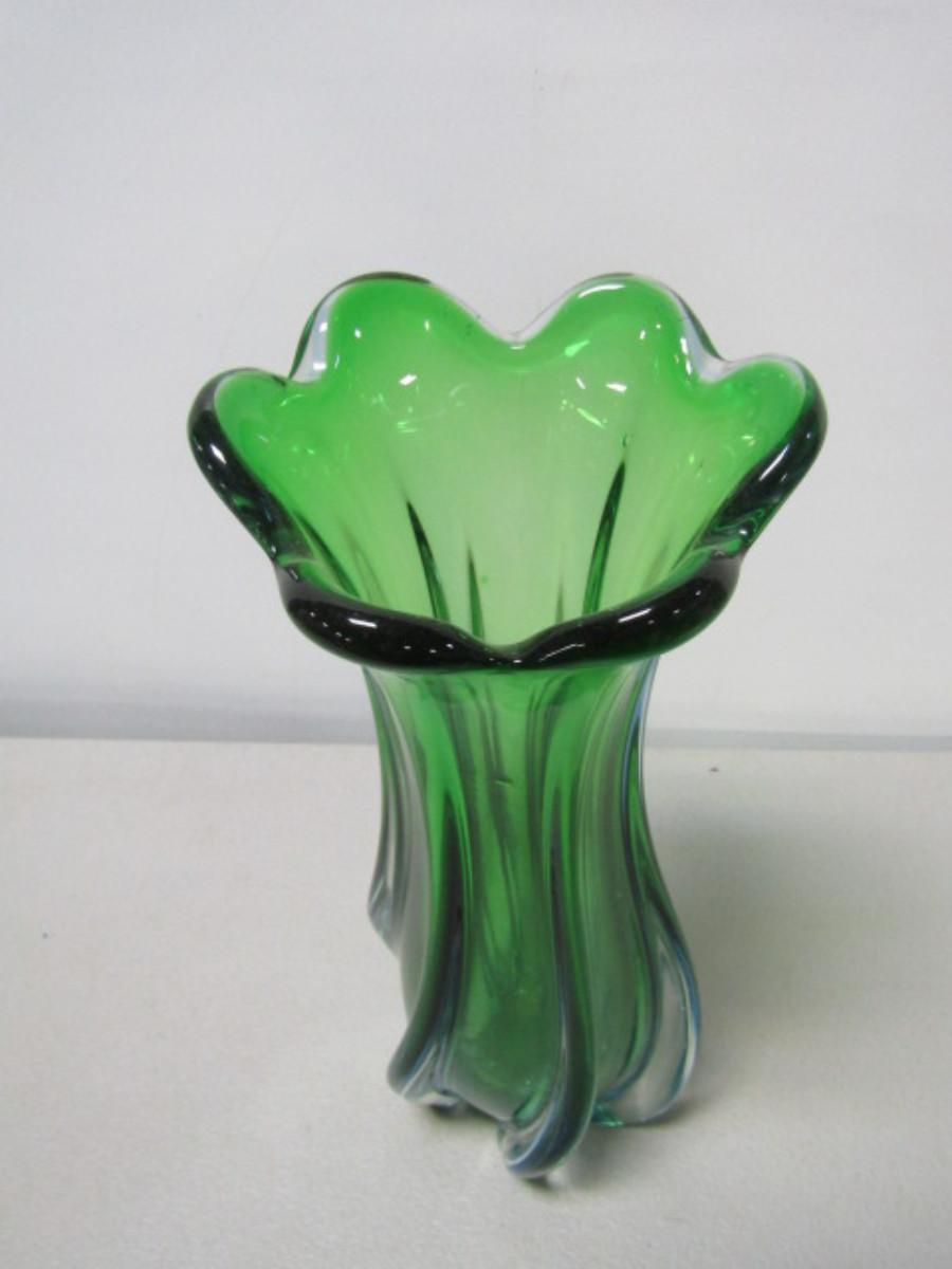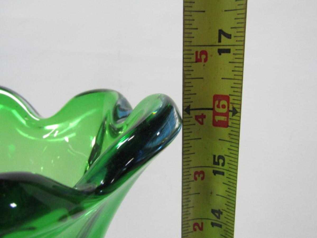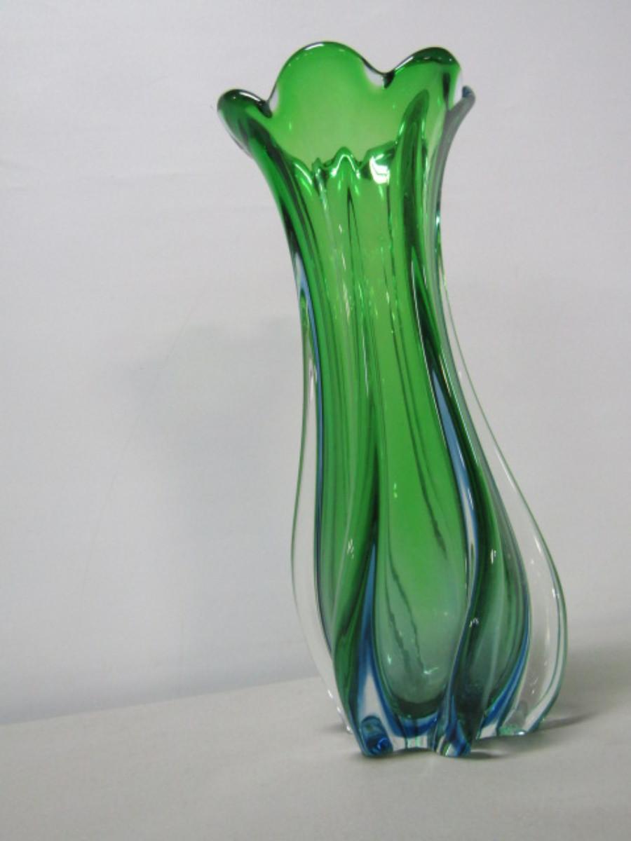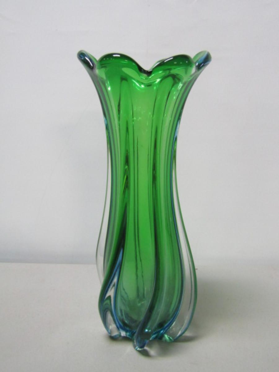 Large Green and Blue Twisted Swirl Art Glass Vase- Possibly Murano- Approx. 16" Tall In good condition.