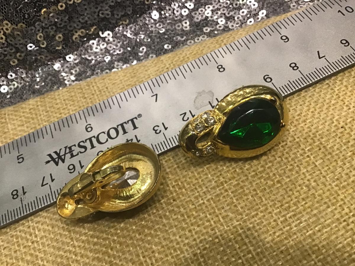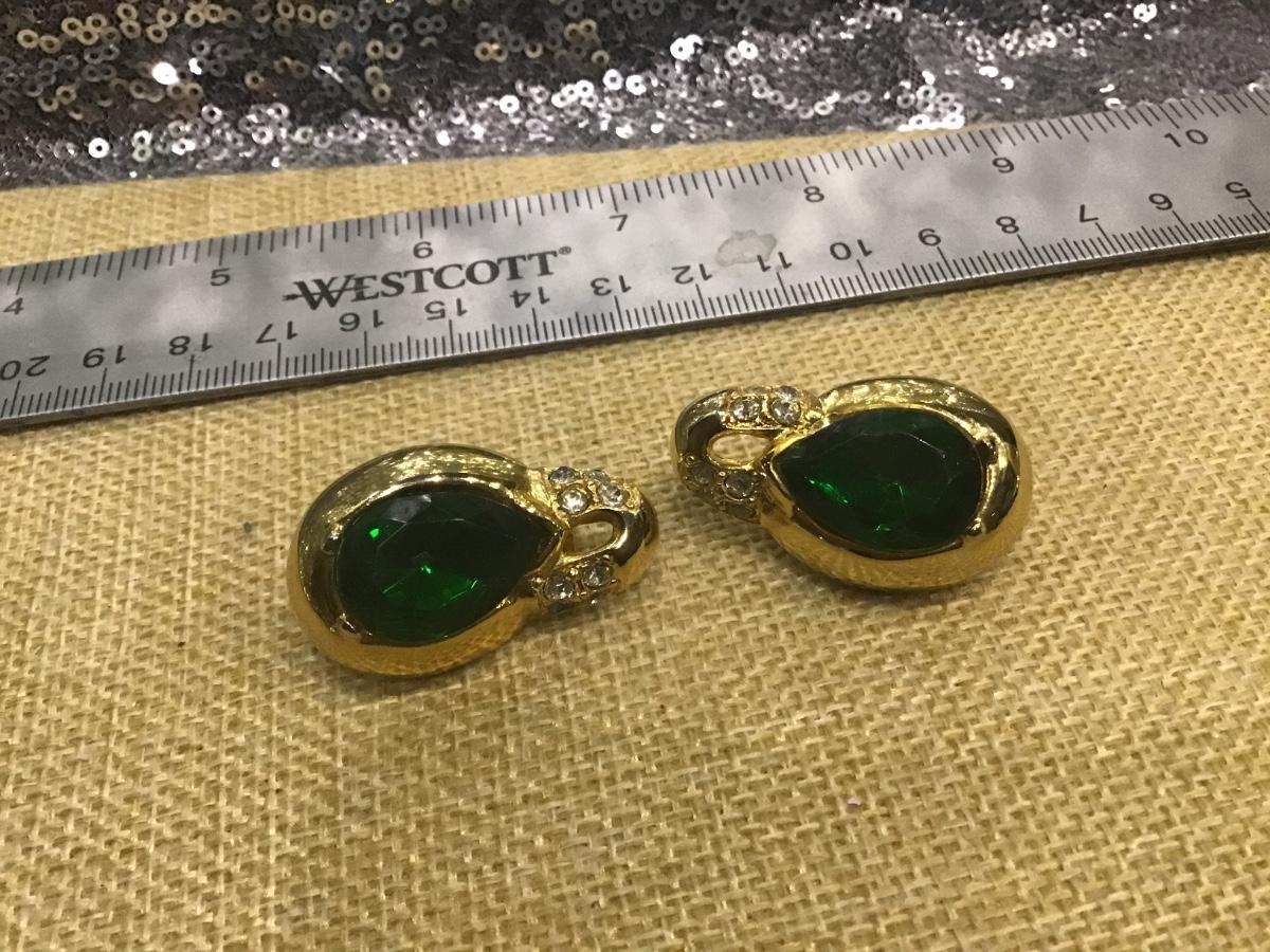 LARGE GREEN CENTER GREEN STONES TONE COSTUME EARRINGS