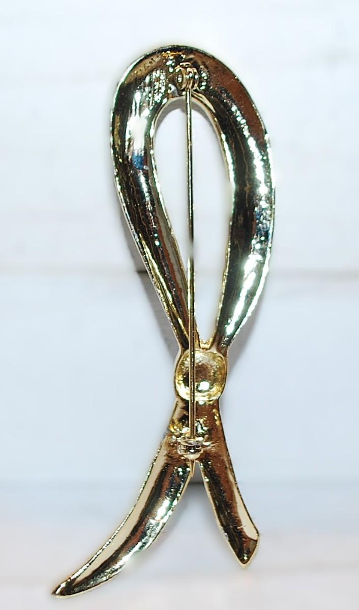 Large GREEN RIBBON BROOCH (4" x 1¾") on a Gold Tone Setting