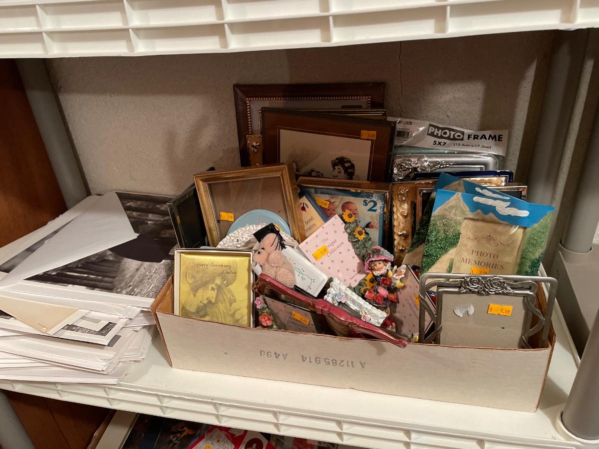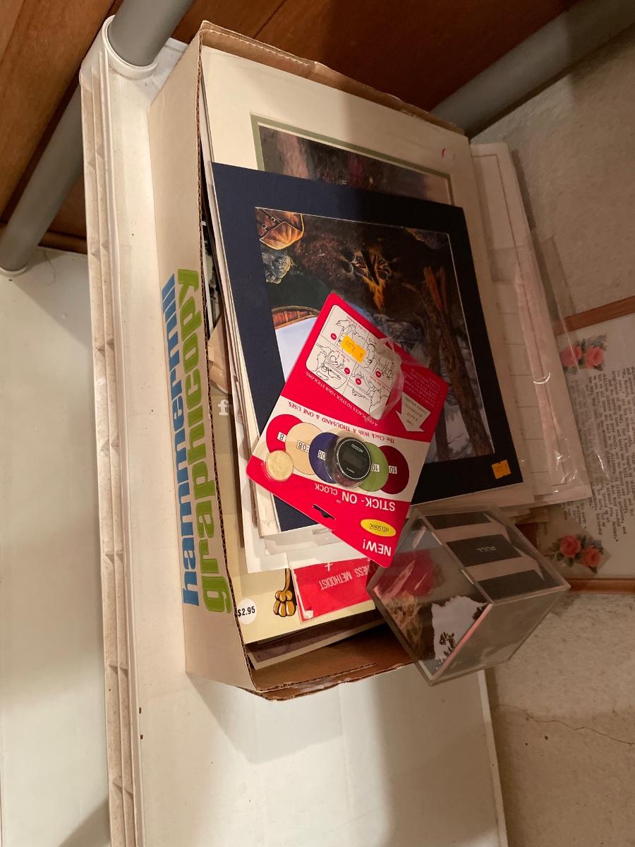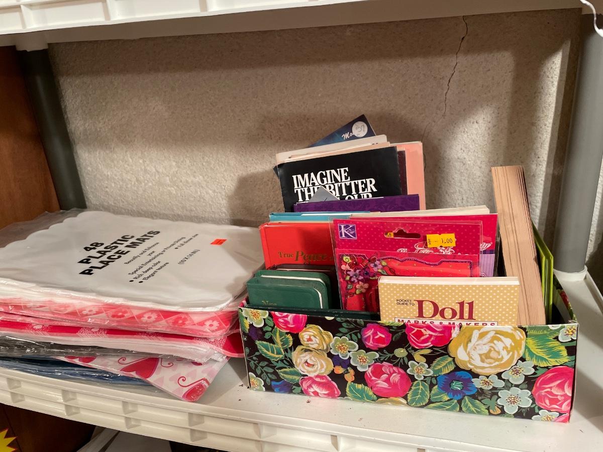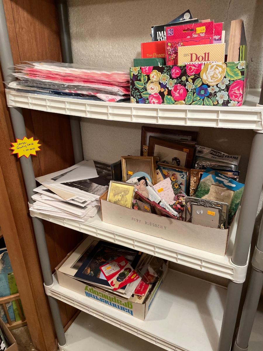 See pictures. Large greeting cards, frames, placemats and more. Shelf not included