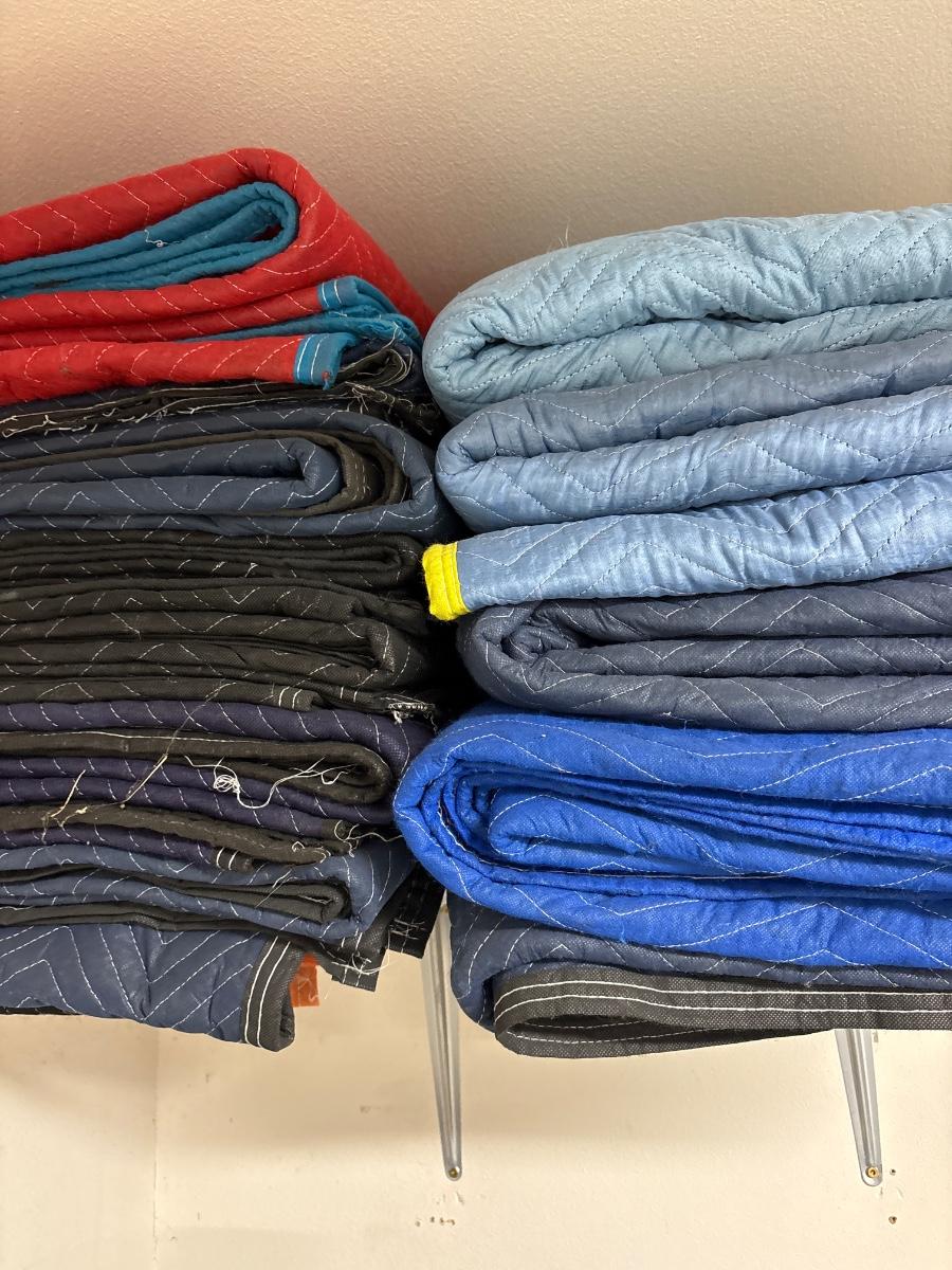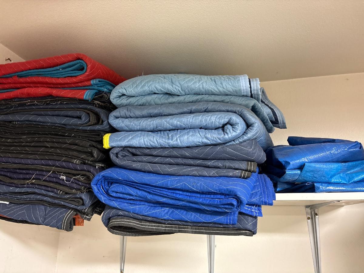 Large group of moving blankets and tarps