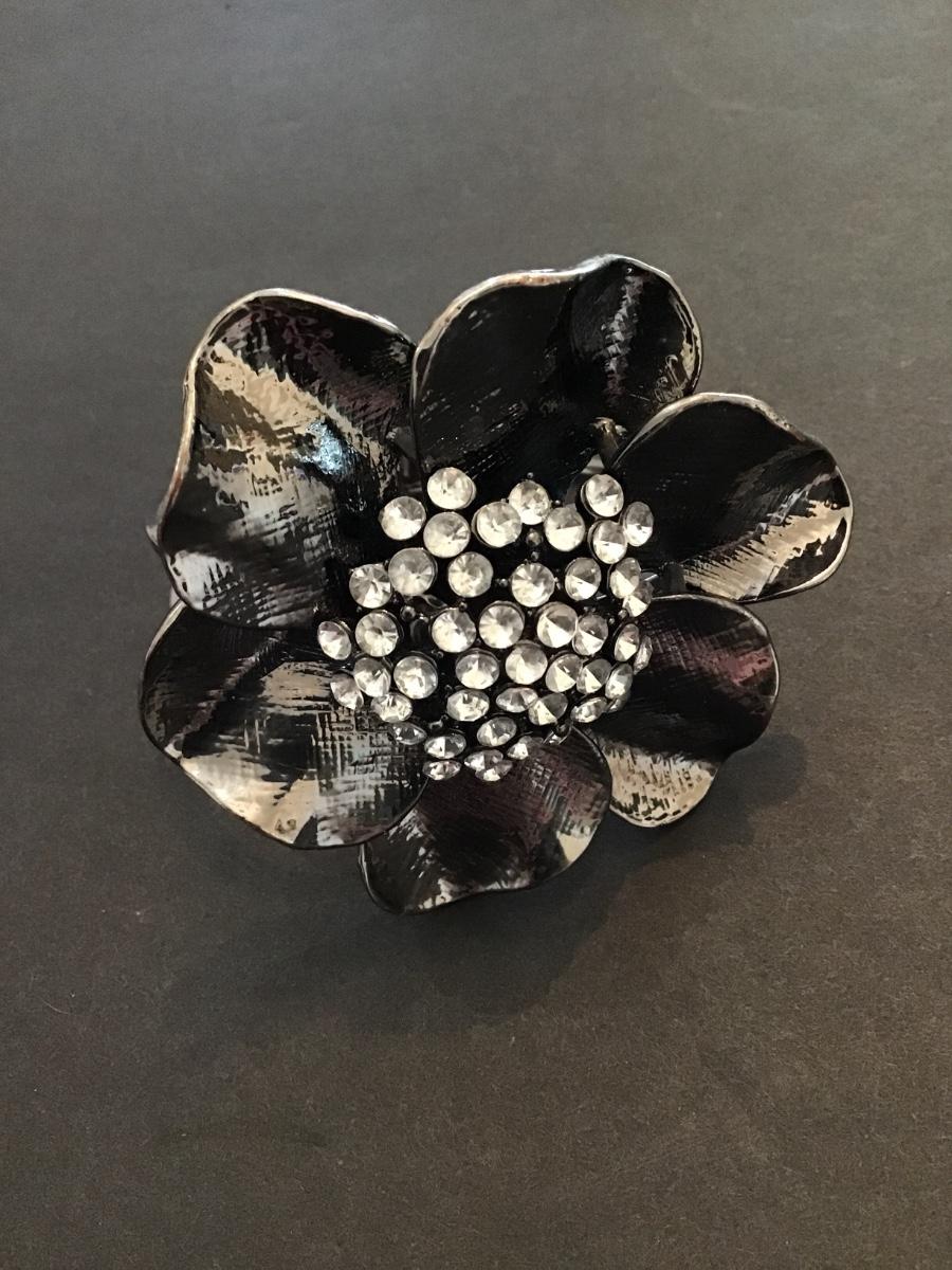 Large gunmetal gray flower clamp bracelet