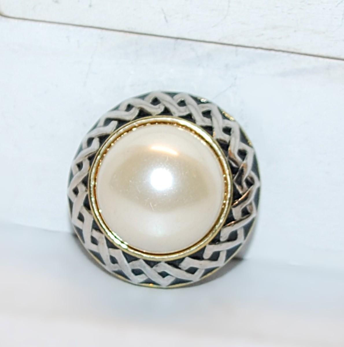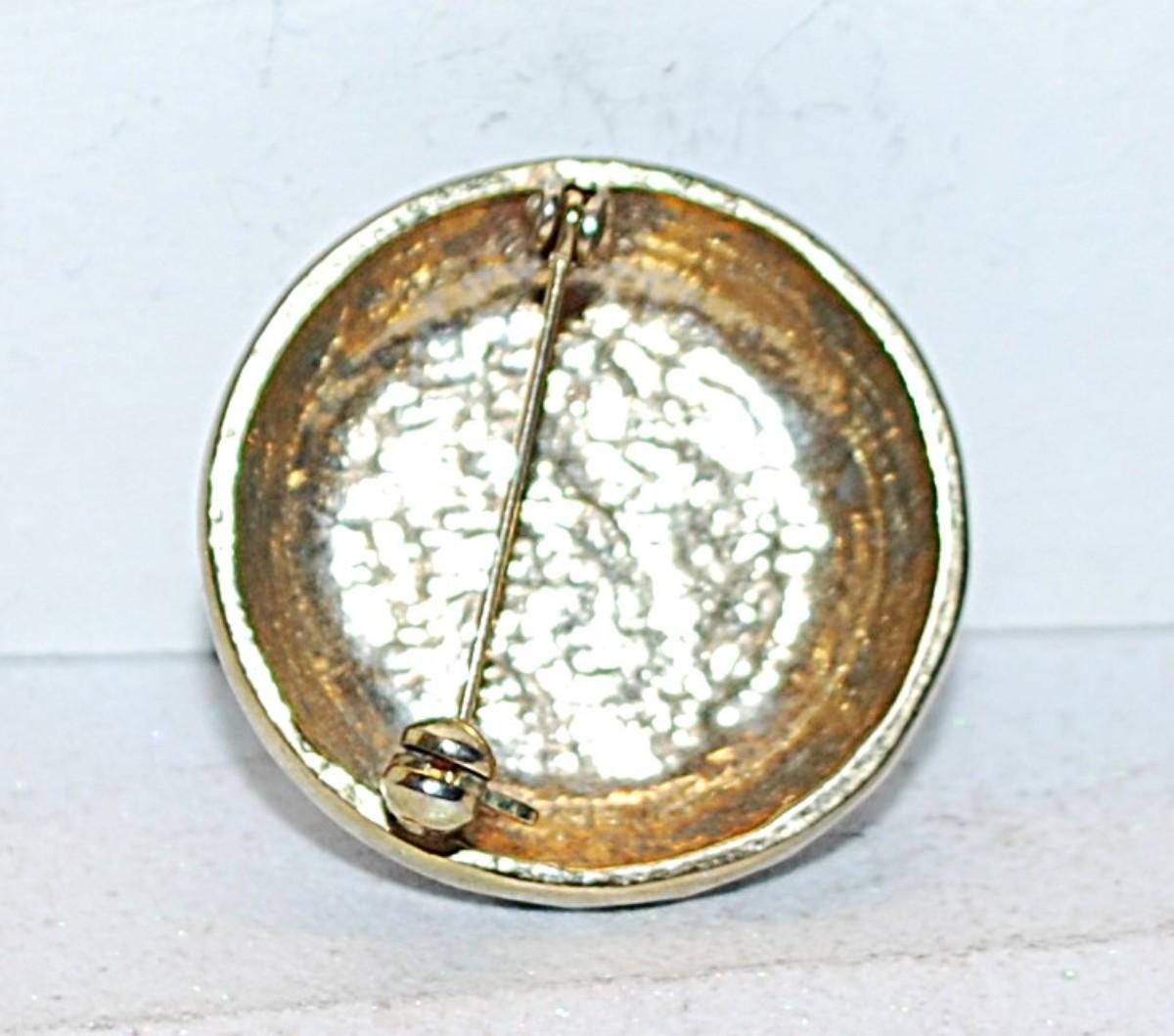 Large Half-Cut Faux PEARL Style BROOCH (1½" Diam.) on a Zig-Zag Gold Tone Setting