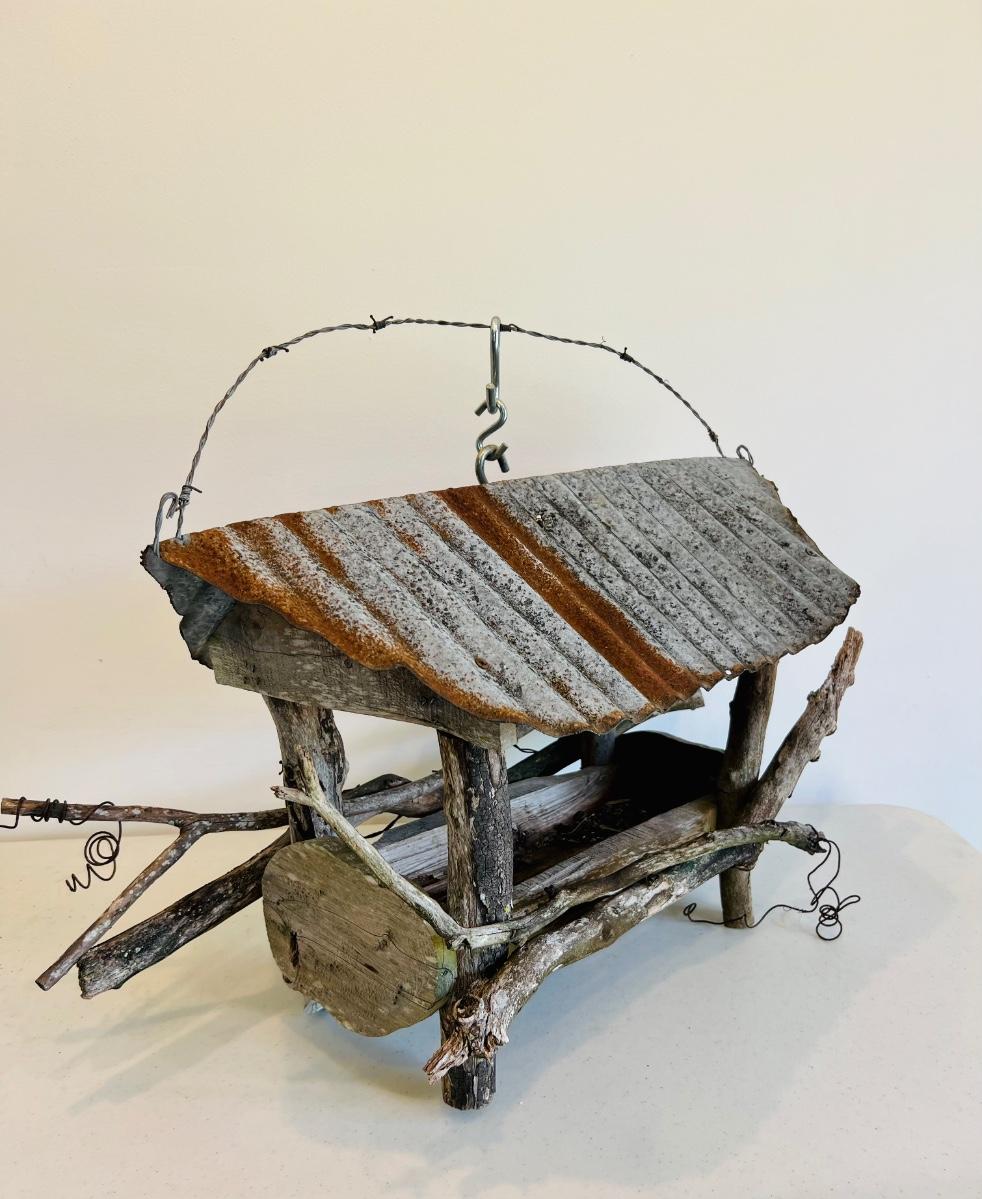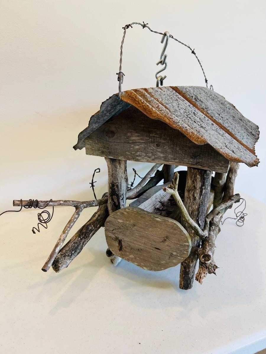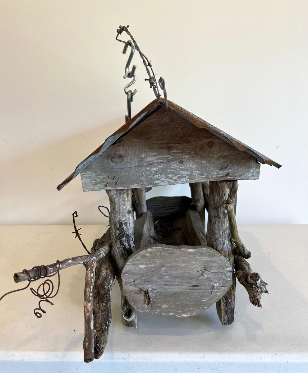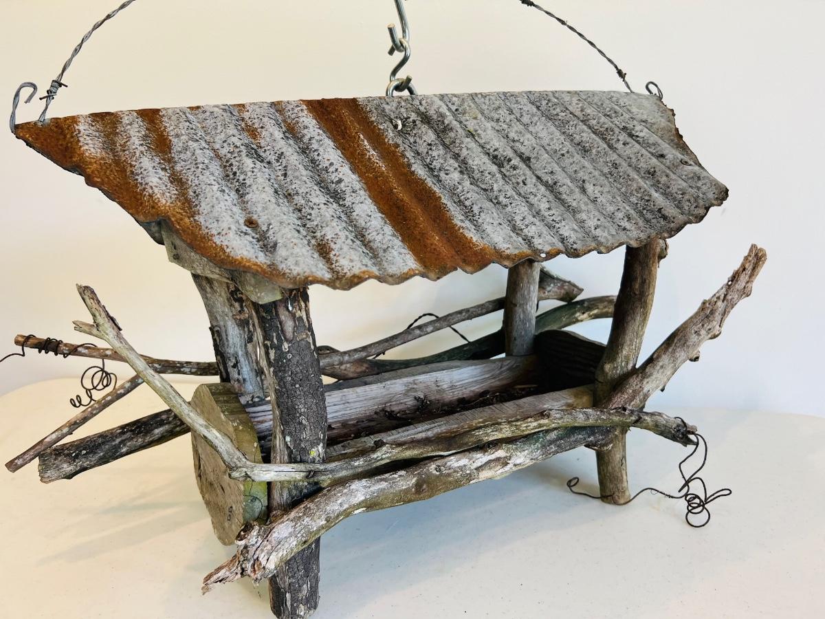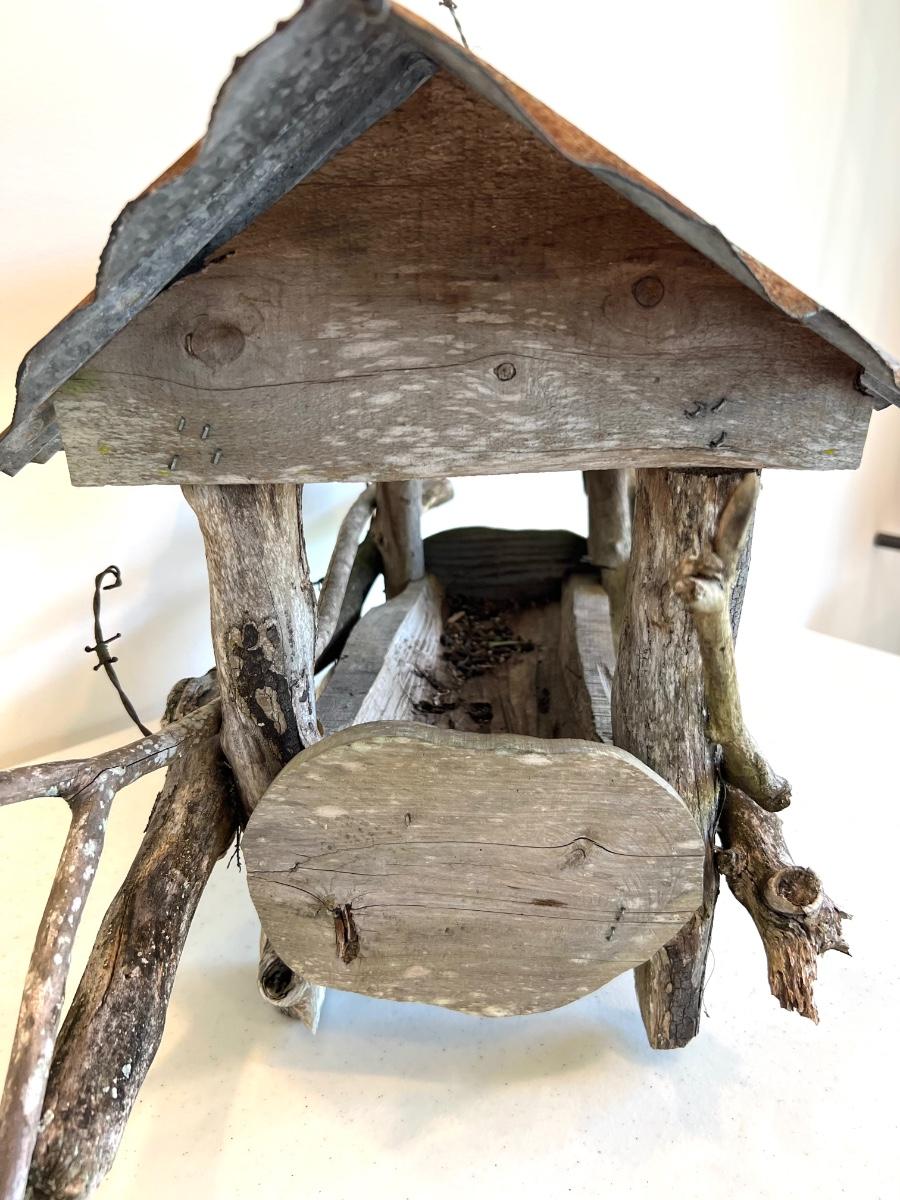 Hand Made Birdfeeder with tin roof measures 30 inches wide 15 inches tall 15 wide