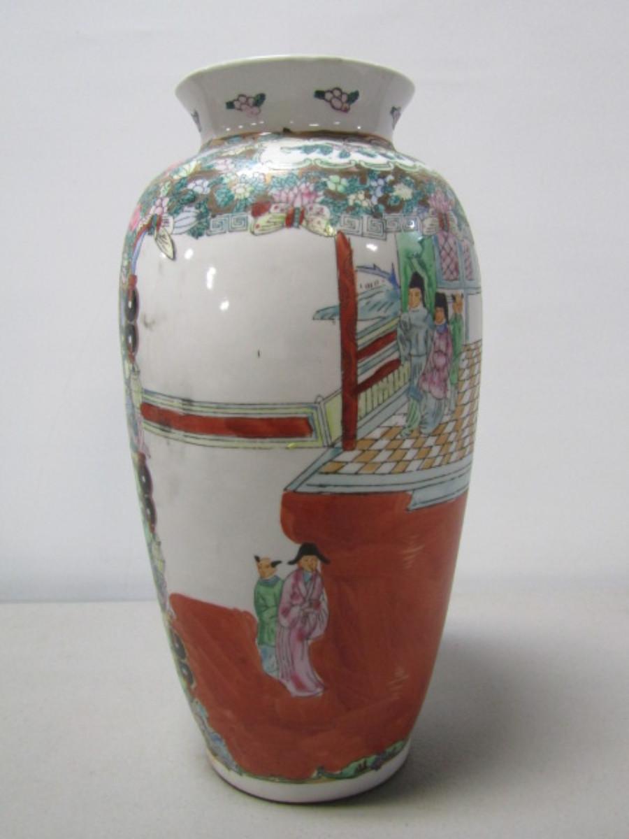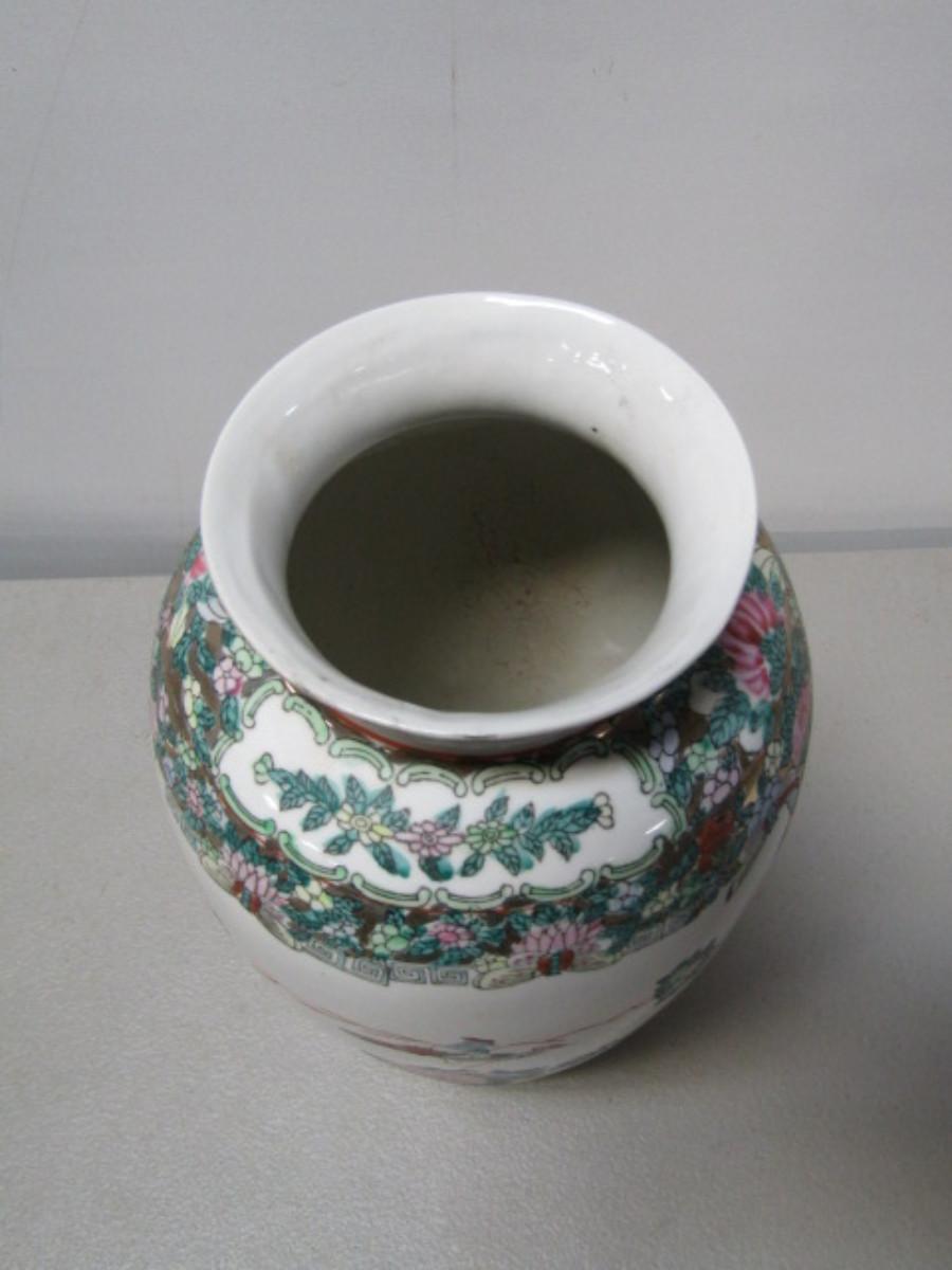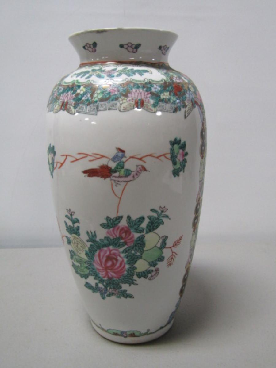Large Hand Painted Ceramic Asian Theme Vase- Approx. 14" Tall- Stamped on Bottom (#1 of 2)