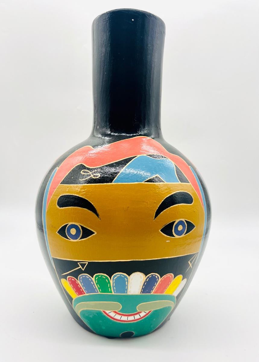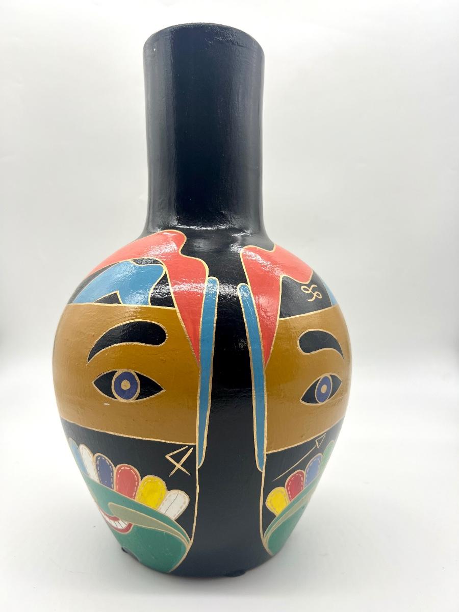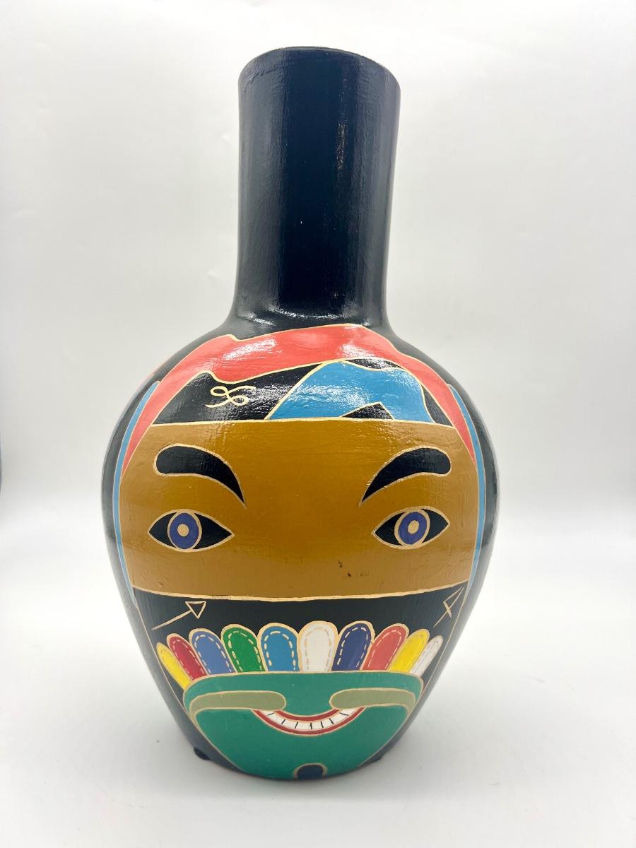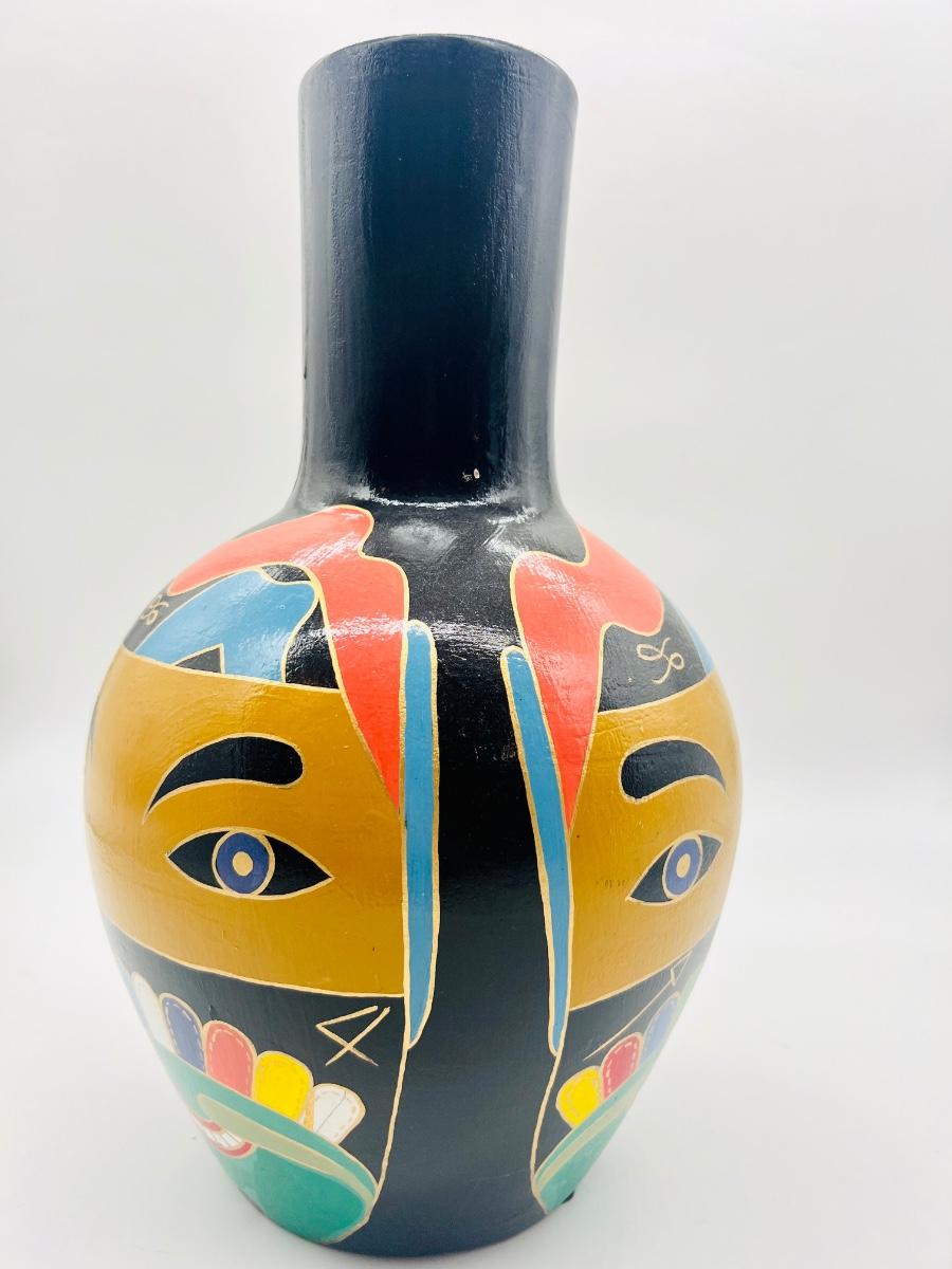 Large Hand Painted Clay Vase. Measure 16 inches tall.