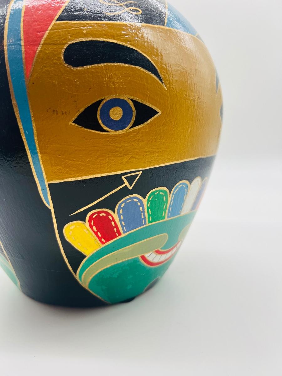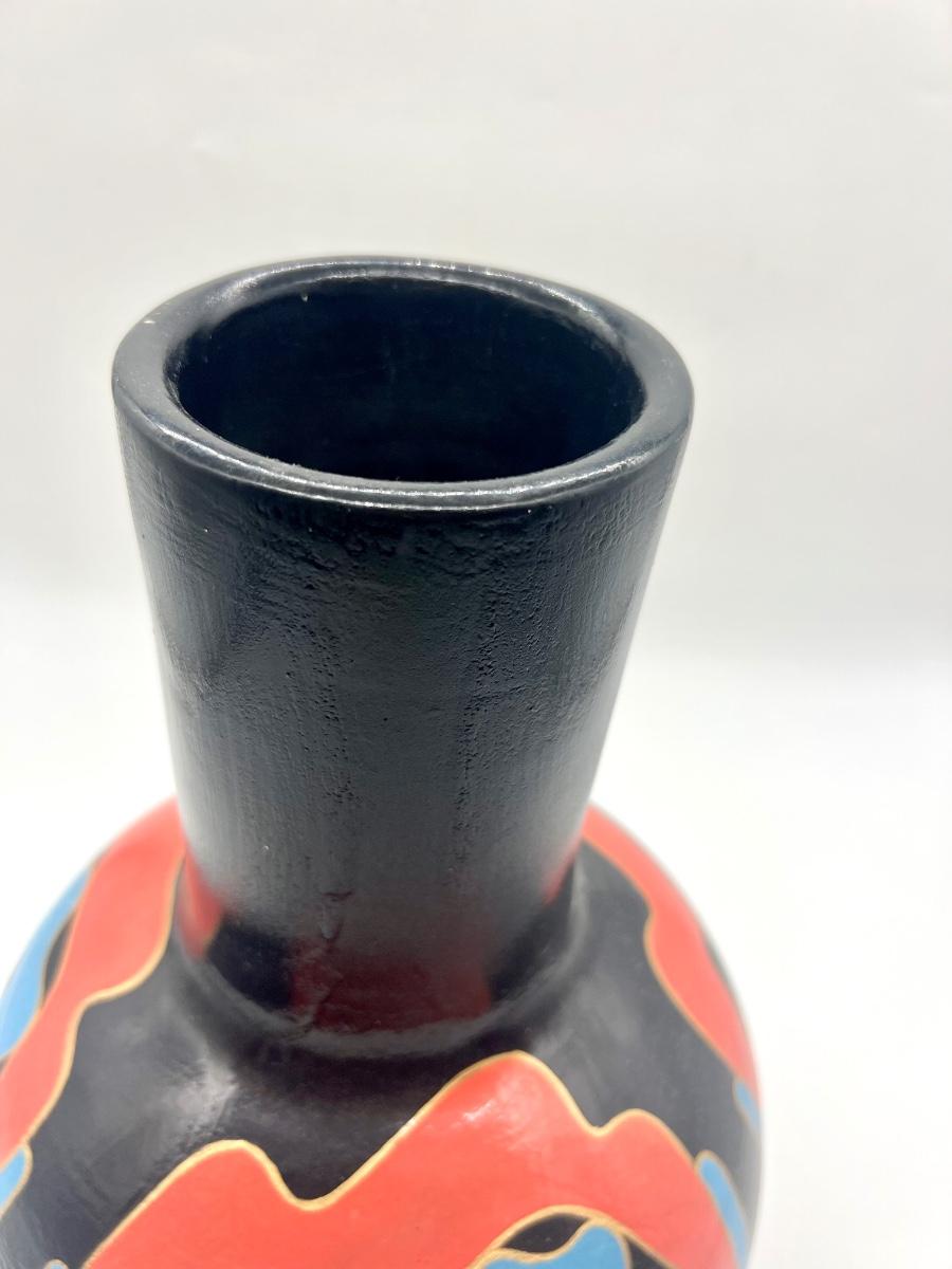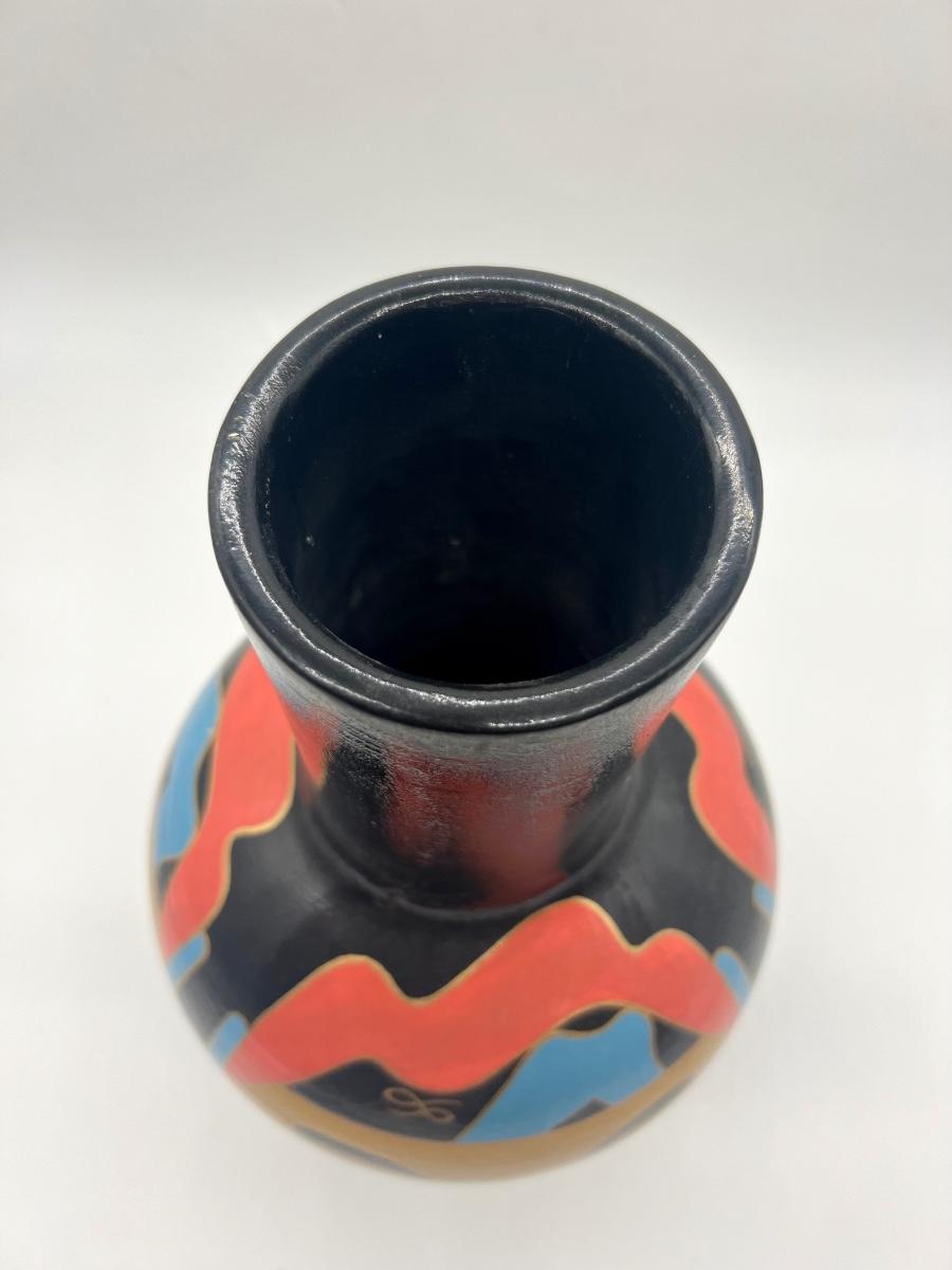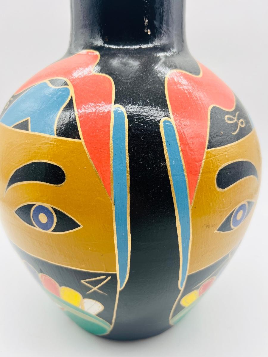 Large Hand Painted Clay Vase. Measure 16 inches tall.