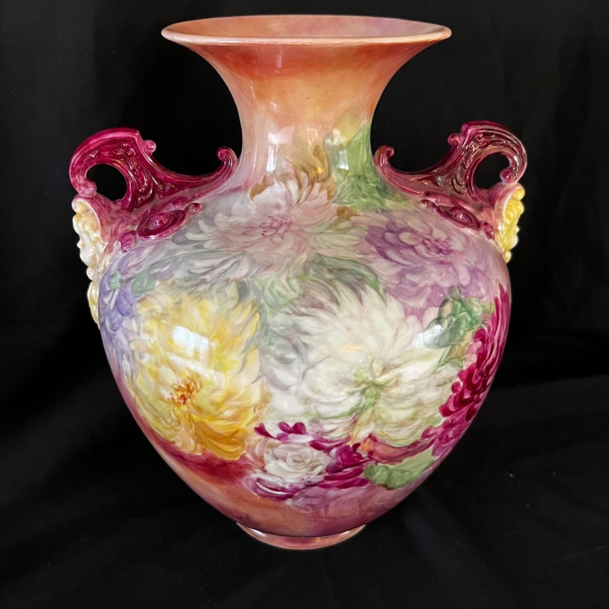 Large Hand Painted Porcelain Chrysanthemum Vase (LR-RG)