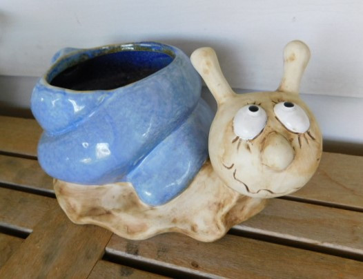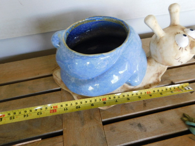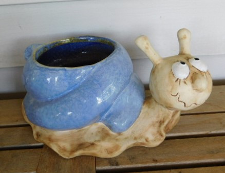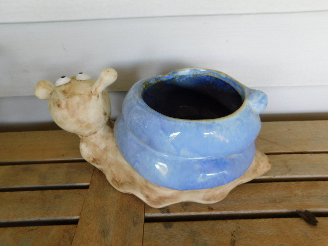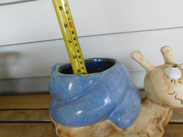 Large Hand Painted Pottery Ceramic Snail Planter 12"x6"