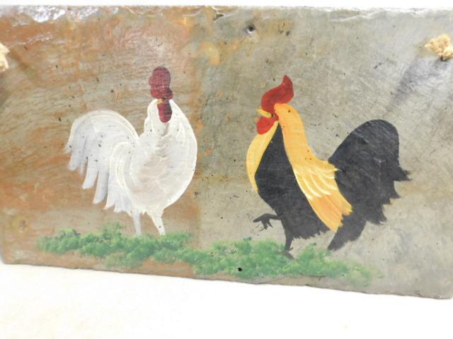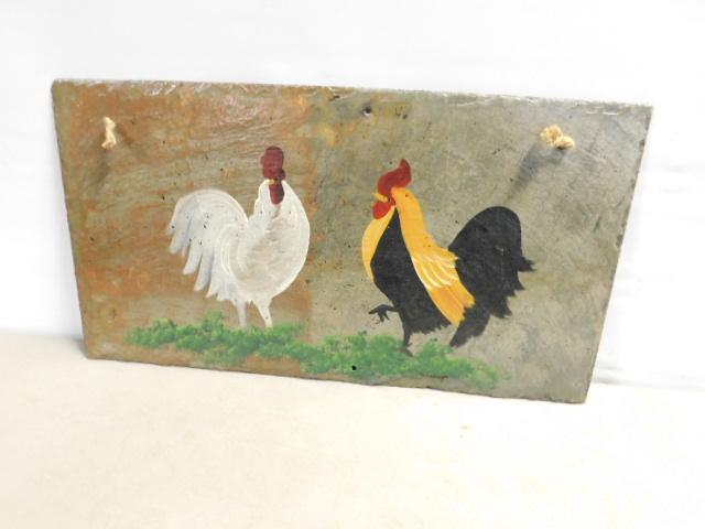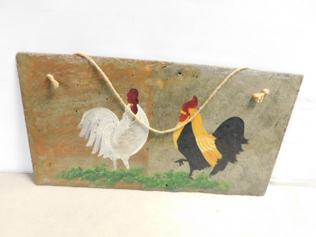 Large Hand Painted Slate Rooster and Hen Wall Hanging 26"x15"