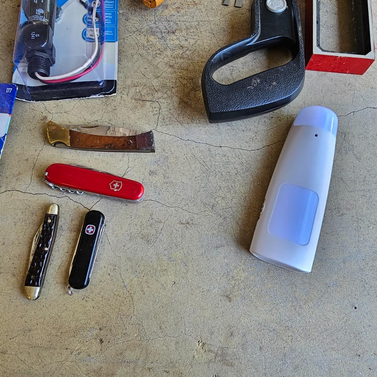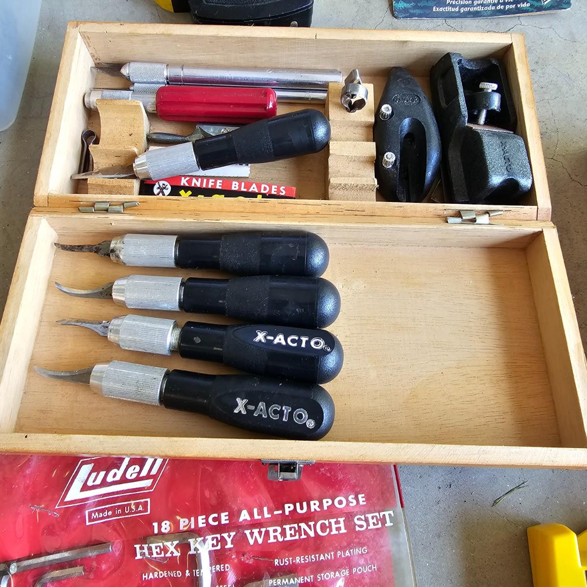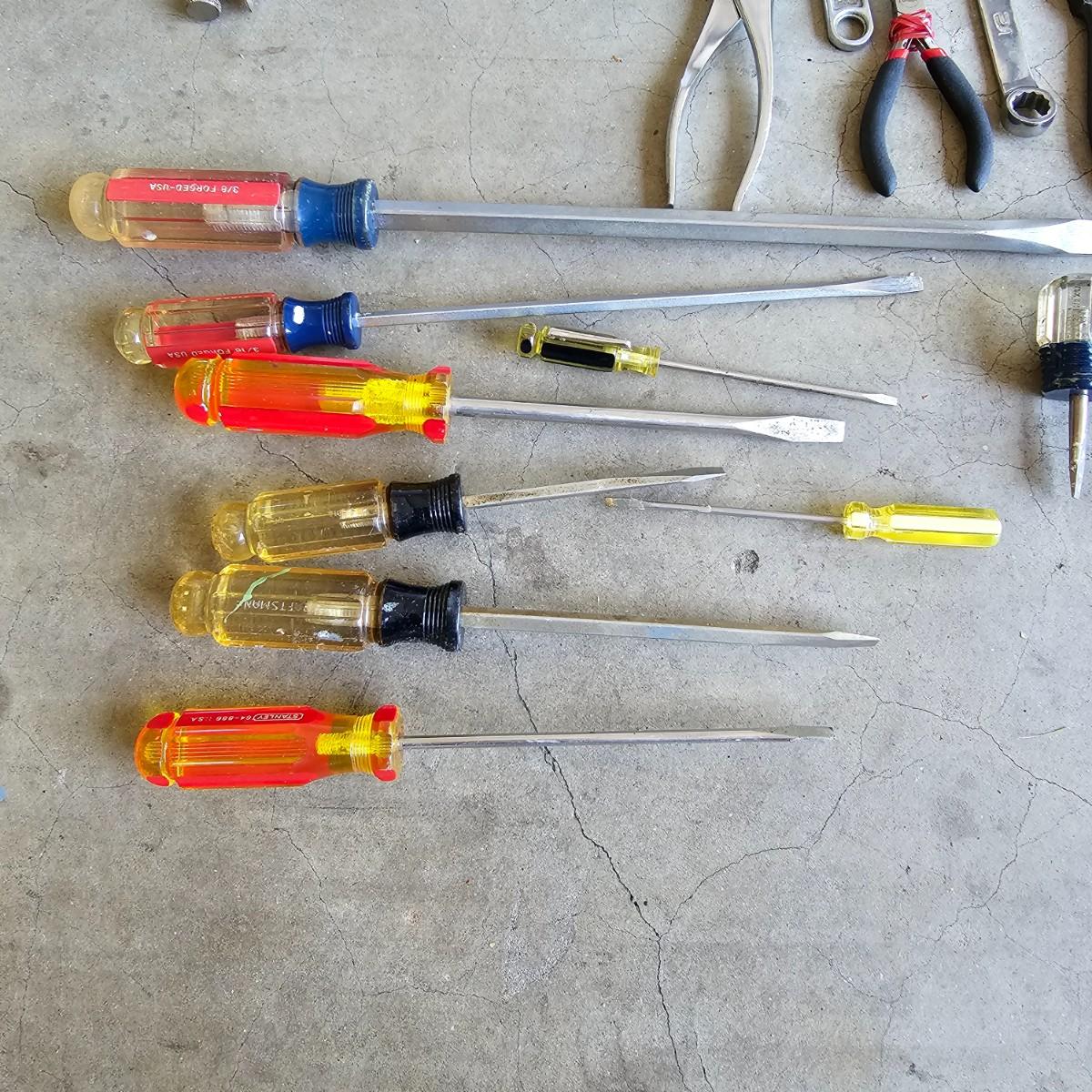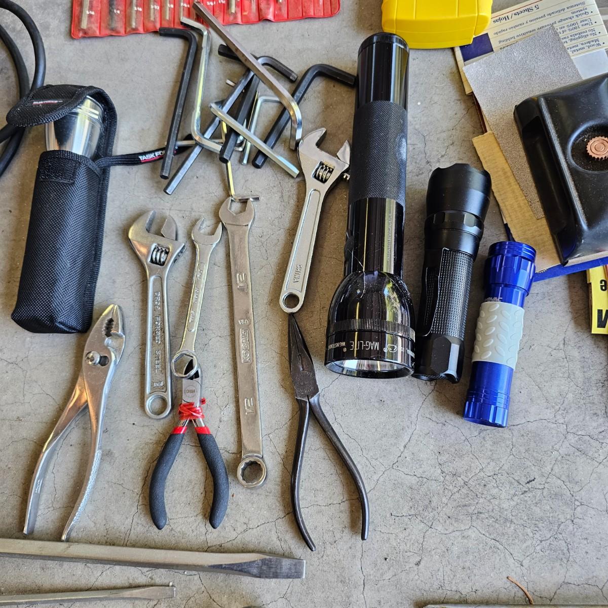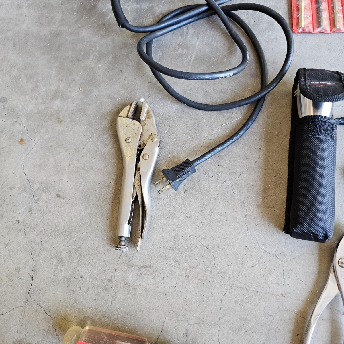 Hammers, screwdrivers, pliers, wrenches, saws and more. Three foot Millers Falls level, Craftsman 3/8" power drill with bits, no chuck key. Stanley stud finder, Lufkin 100 foot roll out tape. Drill plugged in and powered on. Allen wrenches, stapler, flashlights, not tested. See photos for details. Local pickup only.