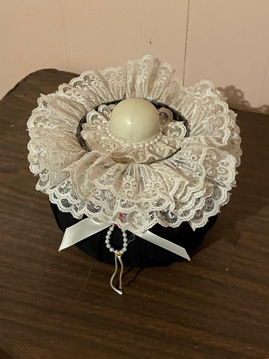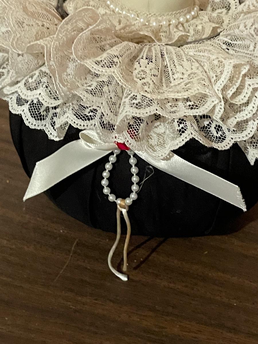 Large Handmade Pin Cushion with Pearl and Lace Accents