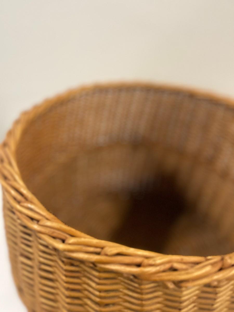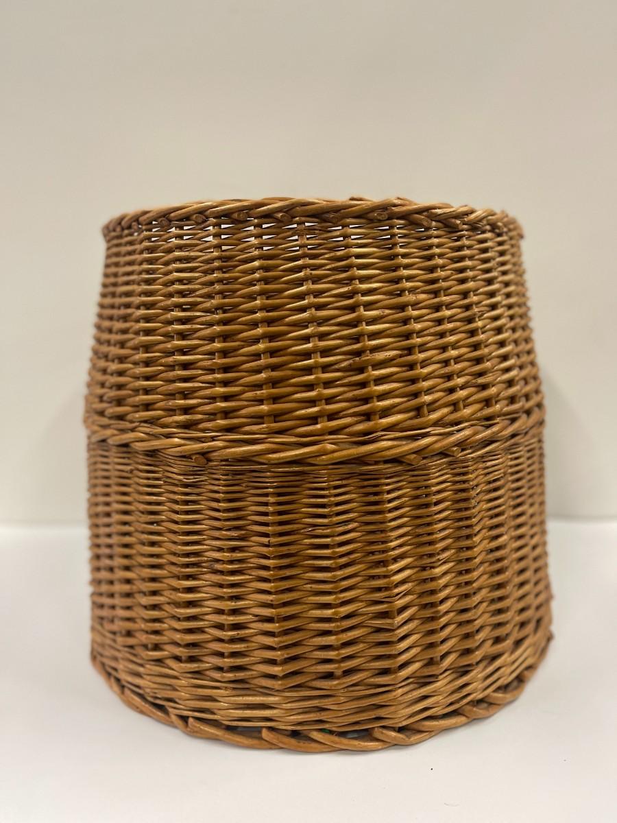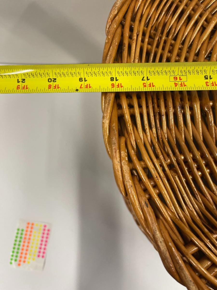 Large, hand made, wicker basket. 18 1/2" x 15 1/2". Very good condition, some minor breakage to some of the wicker pieces. # 902